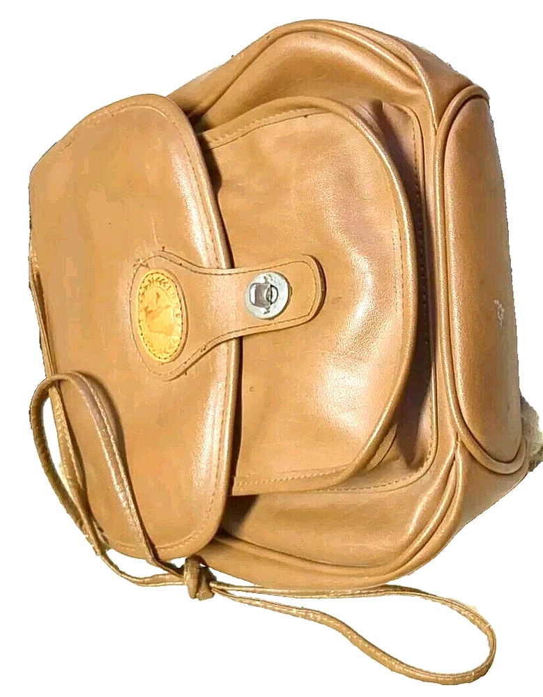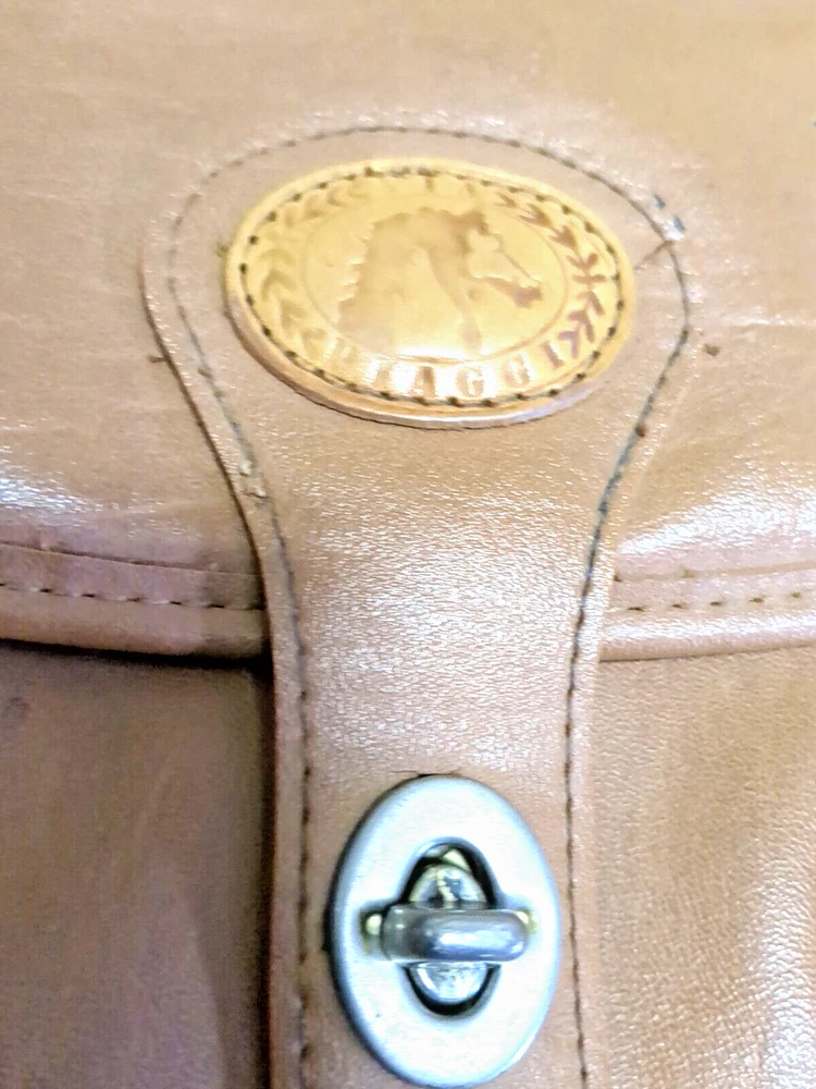 This Via Piaggi crossbody purse is a vintage piece crafted from genuine leather in a beautiful tan color. It features a rectangular shape with a clasp closure and a medium size that measures 10 inches in width, 10 inches in height, and 3 inches in depth. The bag has a 22-inch strap drop and a 2-inch handle drop, making it a perfect fit for women who prefer a comfortable and stylish crossbody. The bag has both inner and outer pockets, providing ample space to store your essentials. The hardware is gold in color, complementing the overall design of the bag. This Via Piaggi crossbody purse is a must-have for women who want to add a touch of vintage style to their wardrobe.