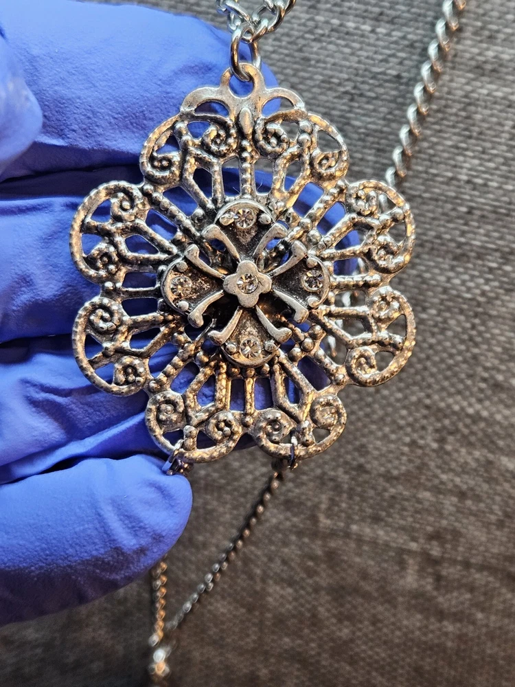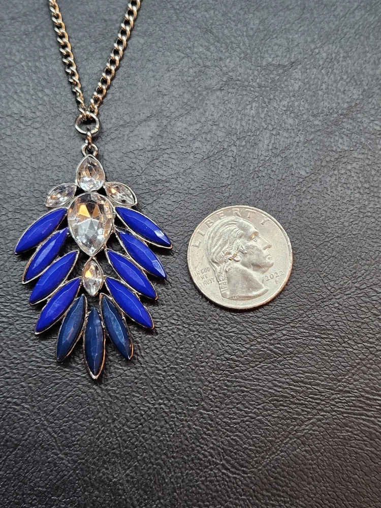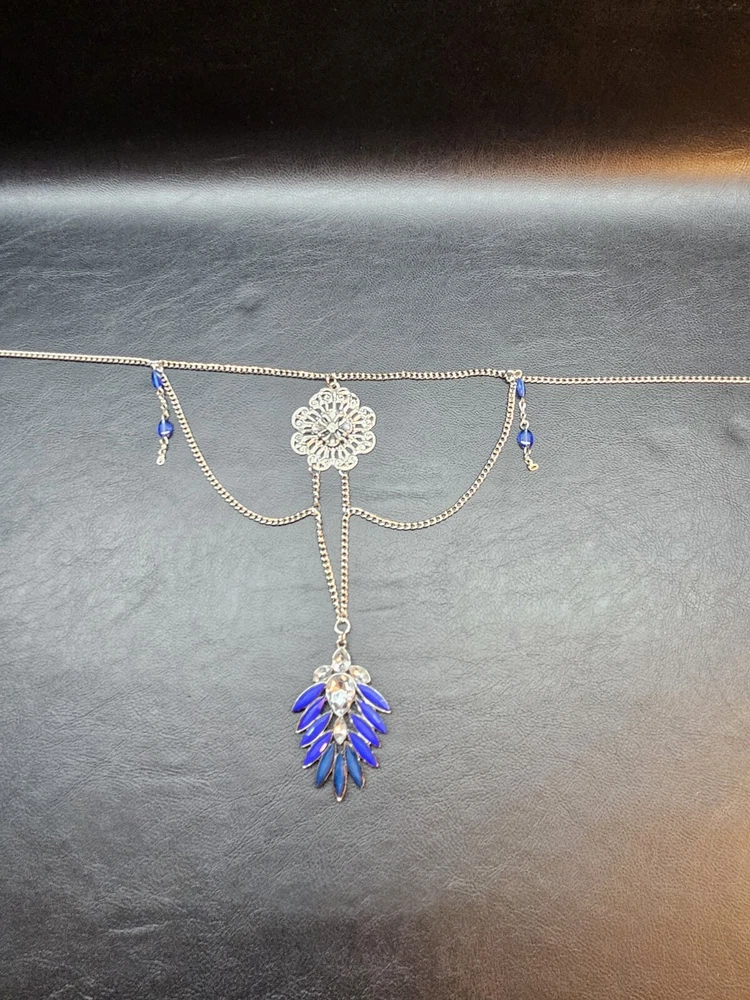 Buy and get free jewelry!! Selling a beautiful ONE of a kind Vintage Silver Tone Victorian Style Royal Blue Rhinestone Necklace. This necklace is 20 3/4" inches long, This is a handmade and Hancrafted necklace and is the only one that exists, Please see pictures for condition and size, free fast shipping!!