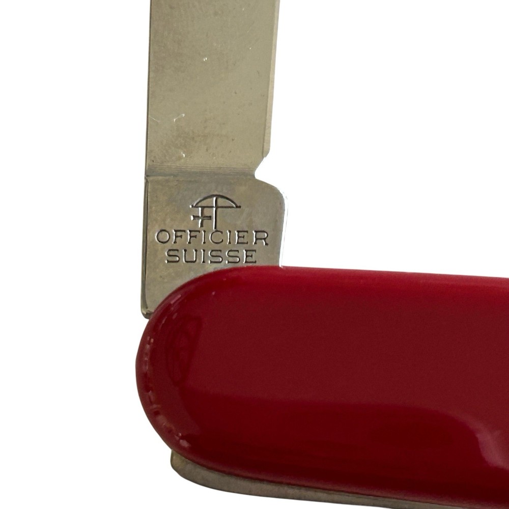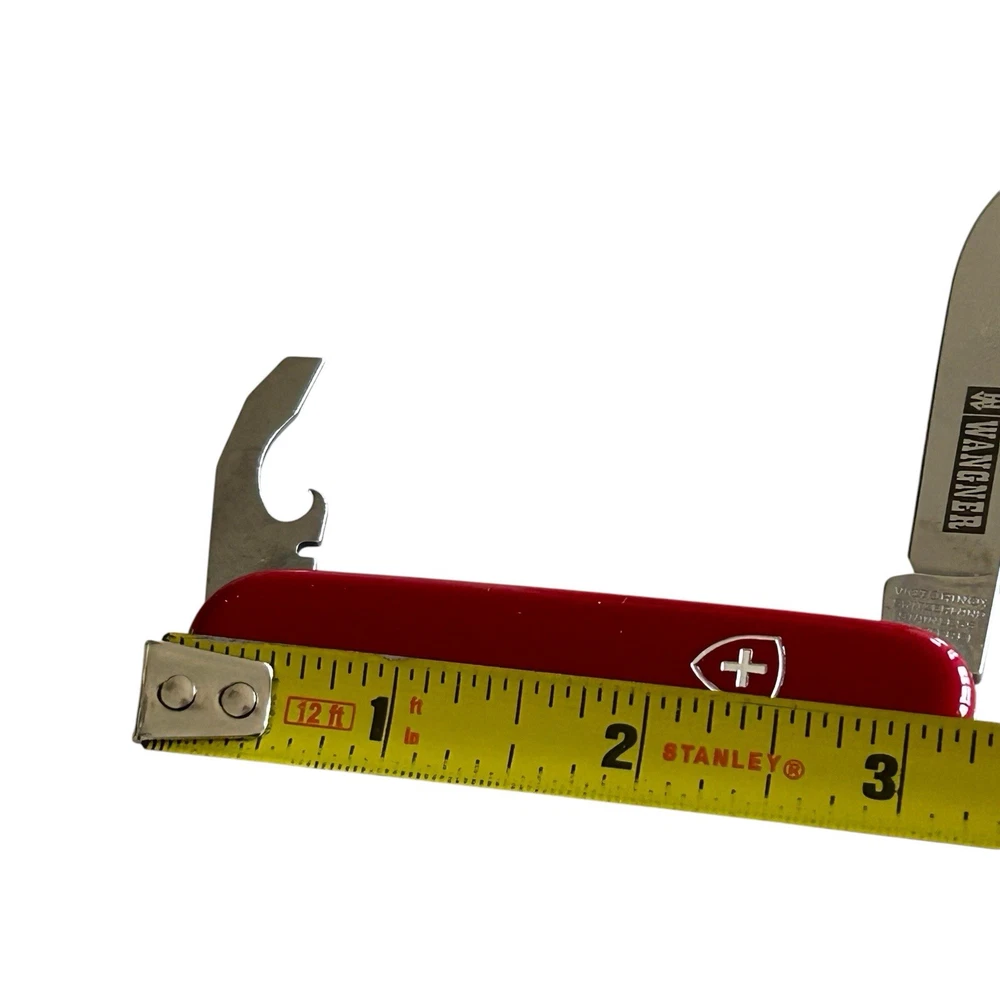 Vtg Victorinox Swiss Army Knife Red Bantam 84mm 2.2300 Wangner Advertisement. Good pre-owned condition with normal vintage wear, back has light abrasion marks, see photos for details. Measurements in photos for details. Comes with original box. (93)