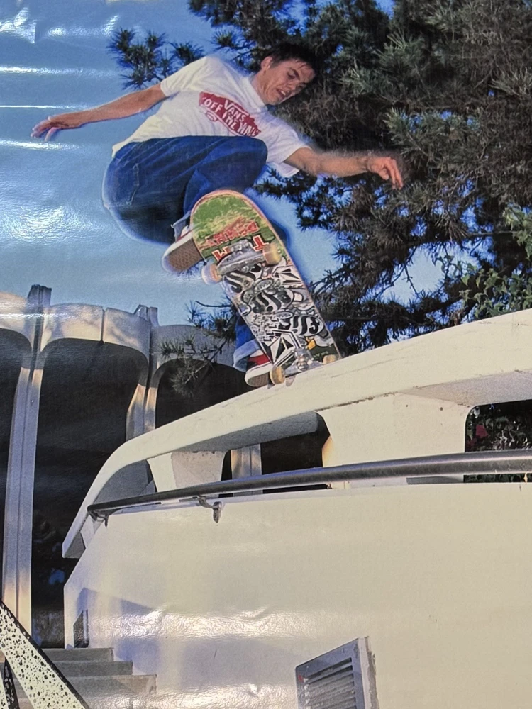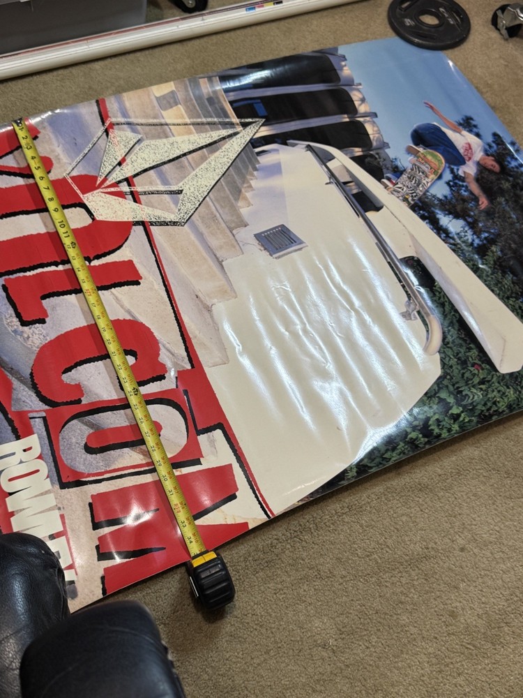Great sticker Hometown Hero glad to have this in my collection! Shipping was a little high, and packaging was almost too good but way too much tape save the planet bra were skaters! Overall happy with everything worth the price of shipping this a rare sticker from my hometown hero! Would buy again
