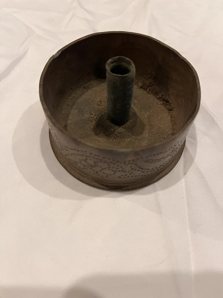 Very cool piece of history - looks like it could be an ashtray, trinket dish, etc. Really neat pattern around the exterior. Just over 3" in diameter. Thanks for looking!
