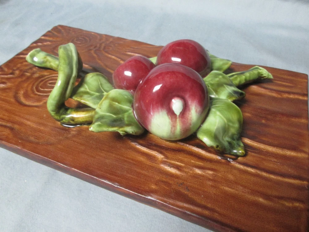 This is a Wade of California art pottery wall plaque with apples in excellent condition. No chips, cracks, or crazing. It is approx. 10 1/2in. by 6 1/4in. Nice item to add to your collection, decor or existing set. Thanks for looking.
