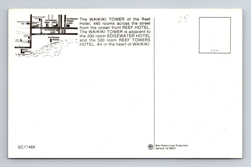 Vintage Waikiki Hawaii Tower of Reef Hotel Postcard