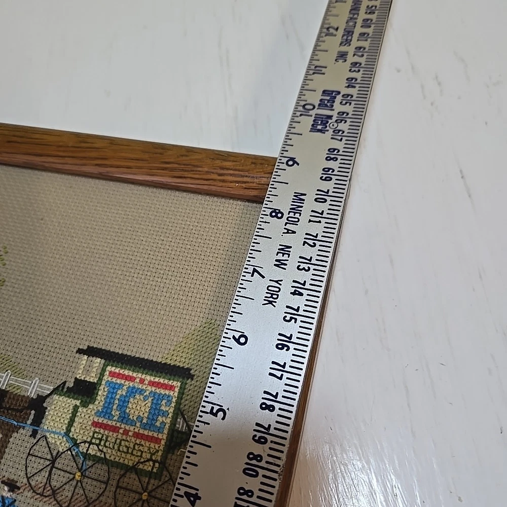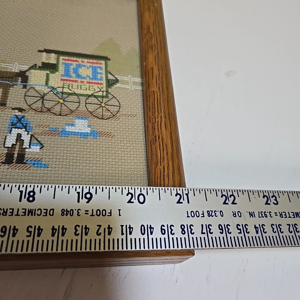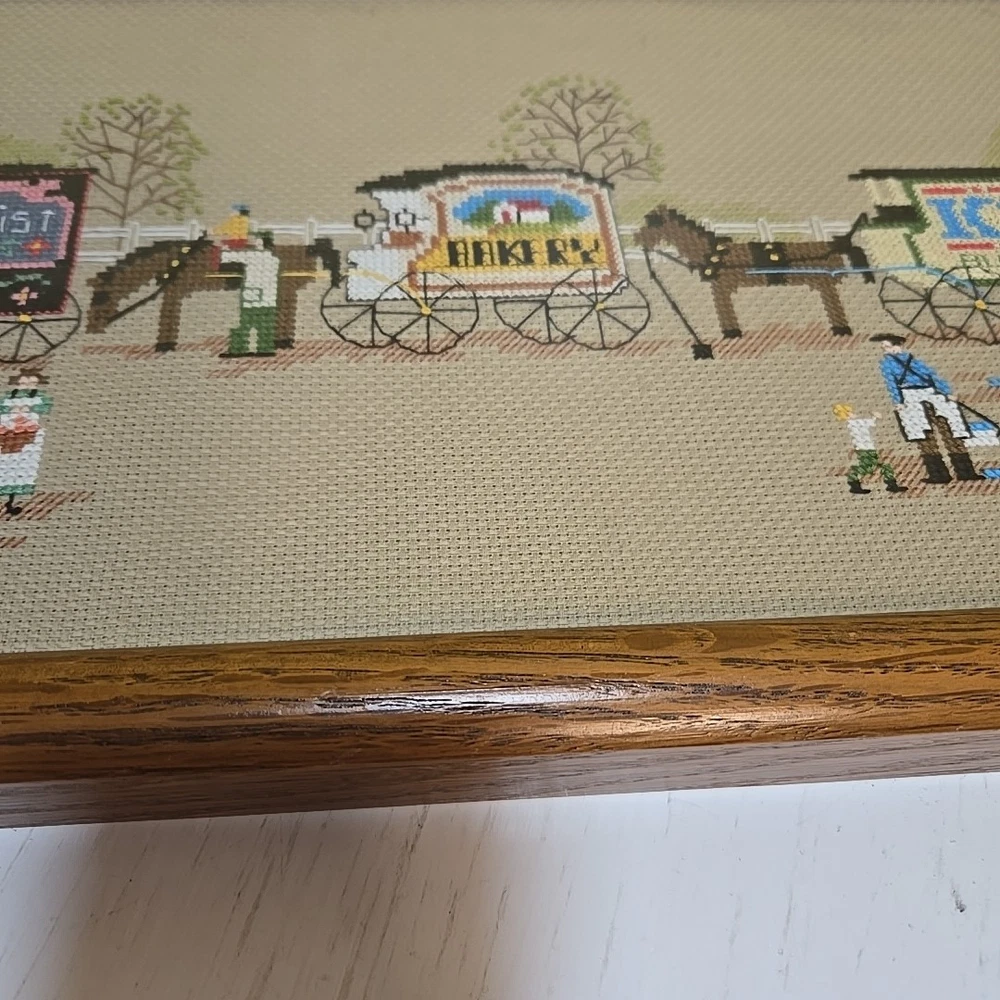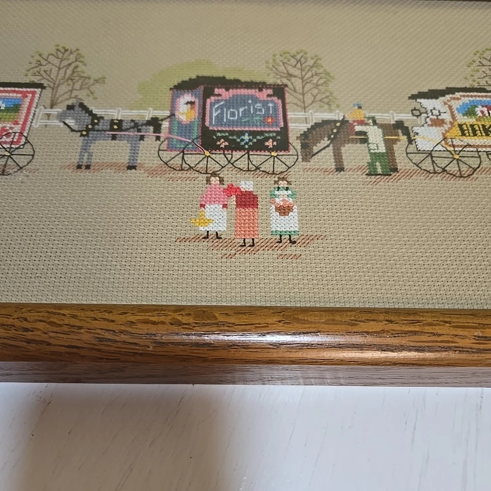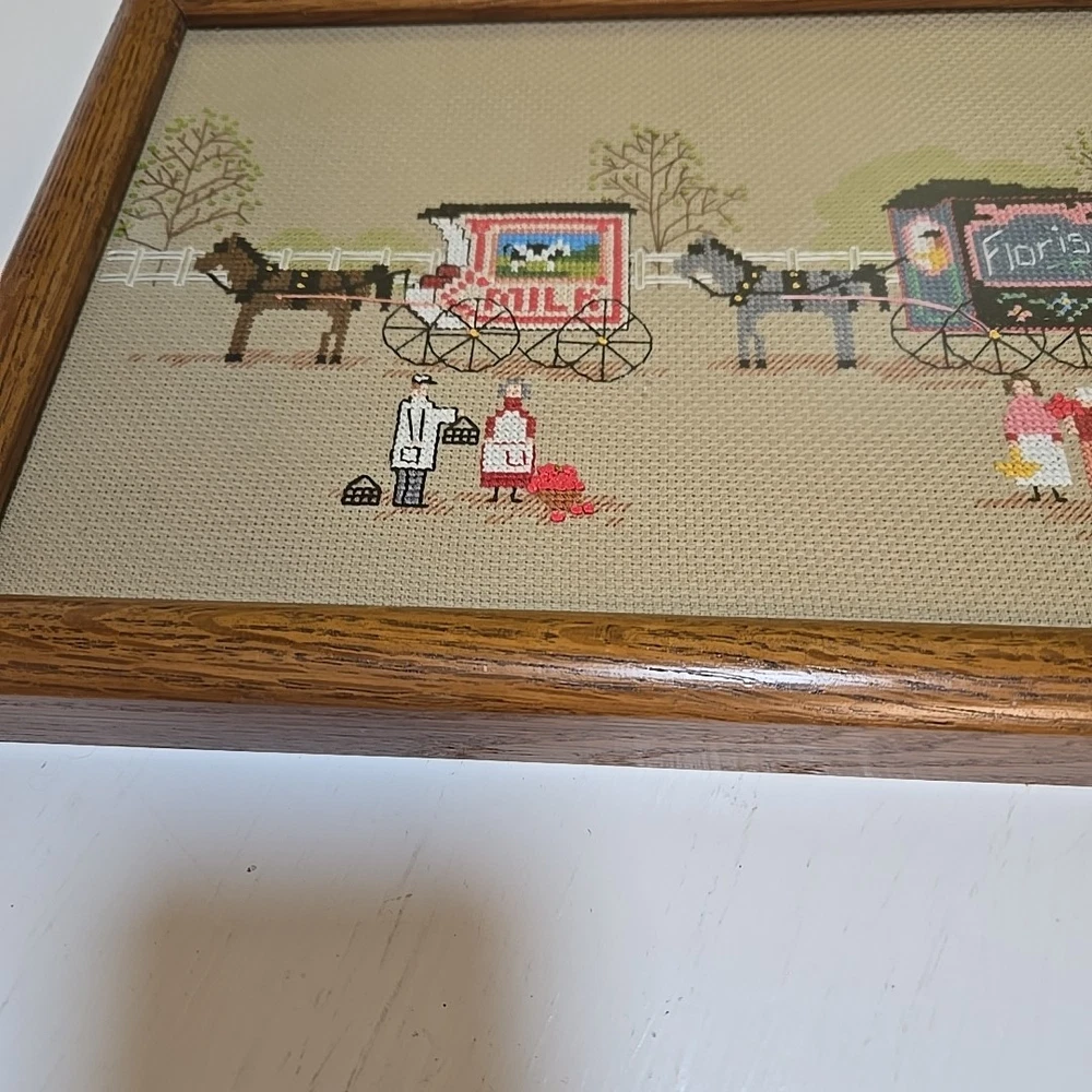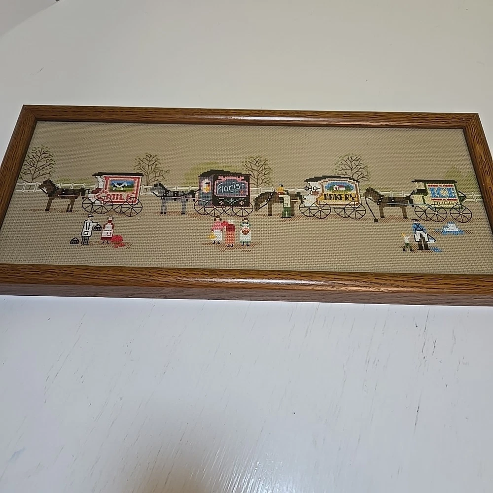 Vintage Wall Art "Old Tyme Wagons" Cross Stitch Framed Picture