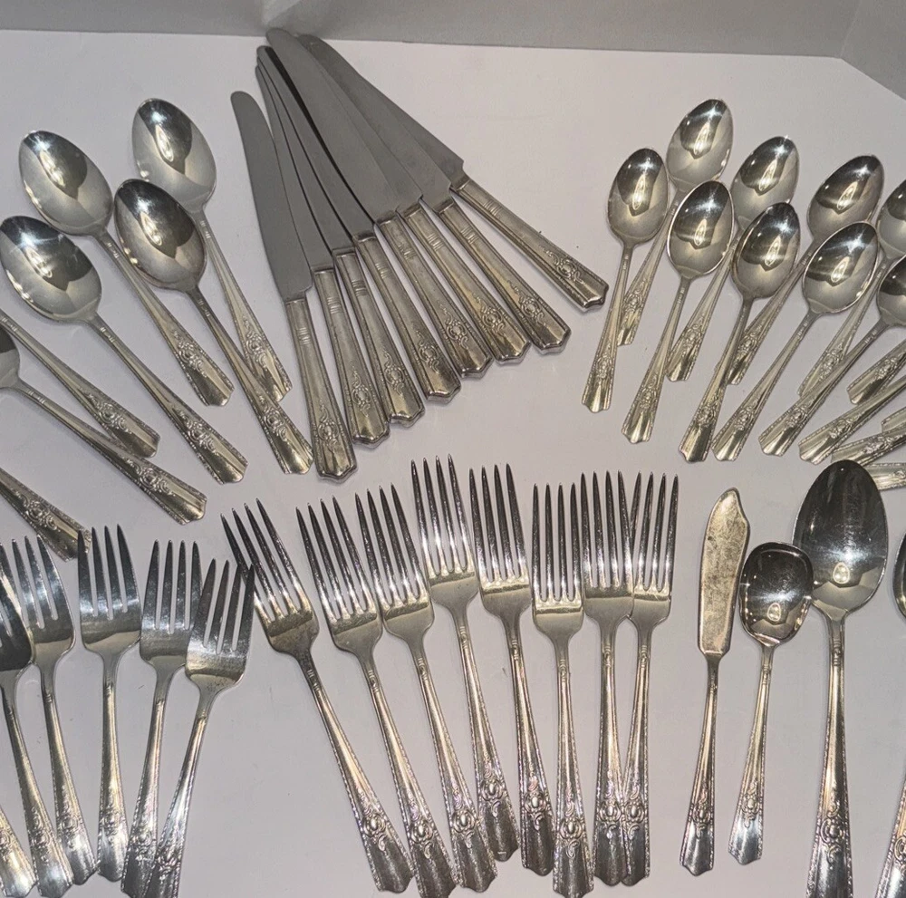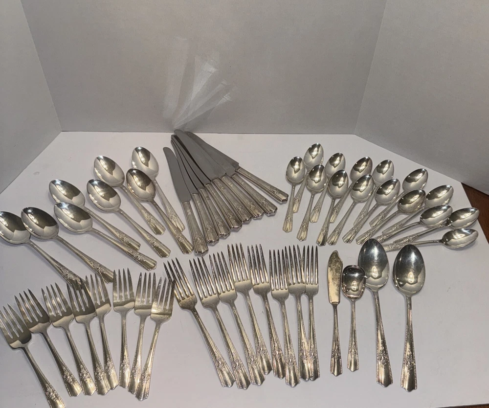 Vintage Wallace Silver Harmony House Maytime 51 Pc Silver-plate Flatware Set MCM