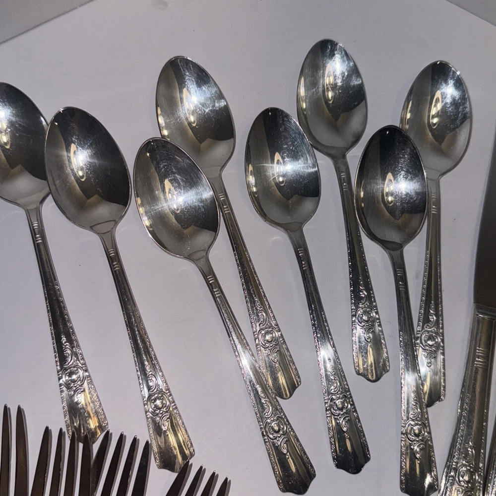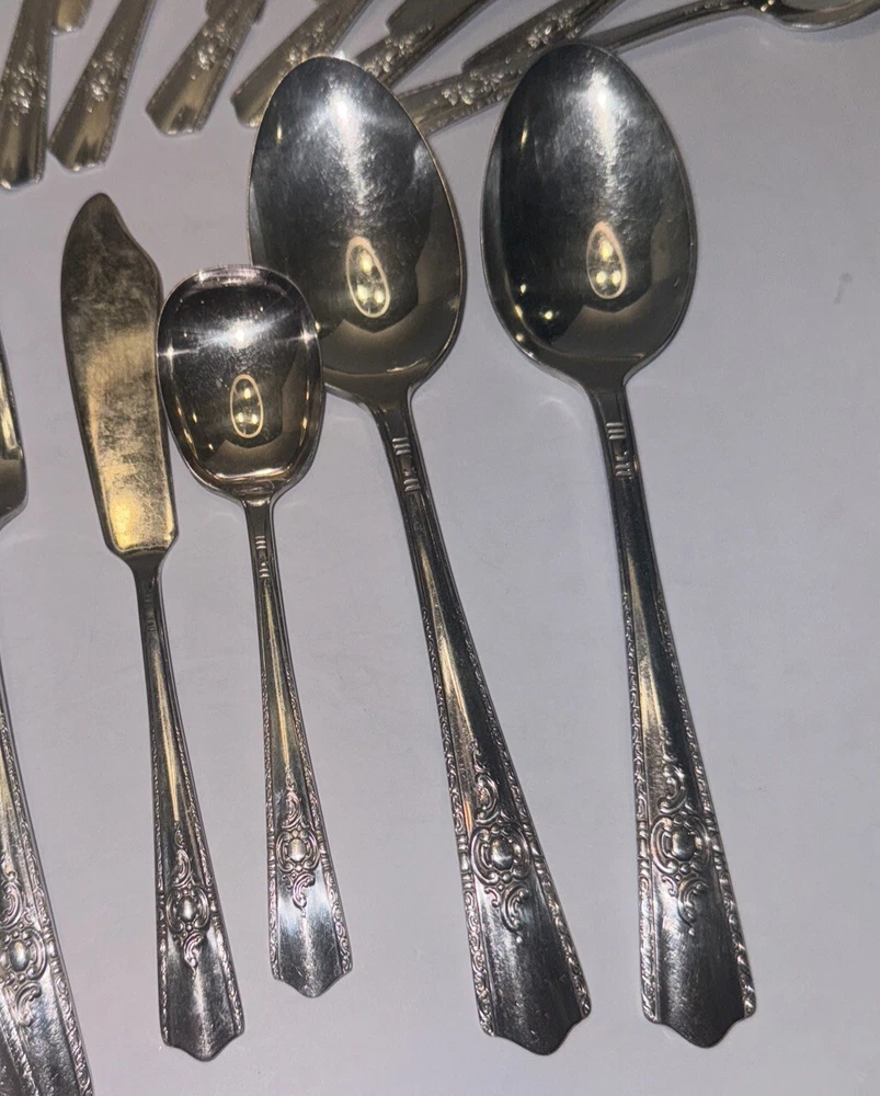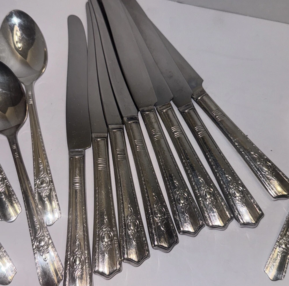 Occasion: all occasions Personalize: No Material: Silver Plated Color: Silver Brand: Harmony House Type: Flatware Set Handle Material: Silver Plated Set Includes: Flatware Set Department: Adults Model: Maytime Style: Mid-Century Modern Handle Pattern: Maytime
