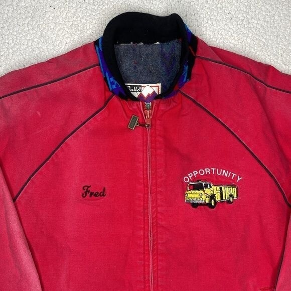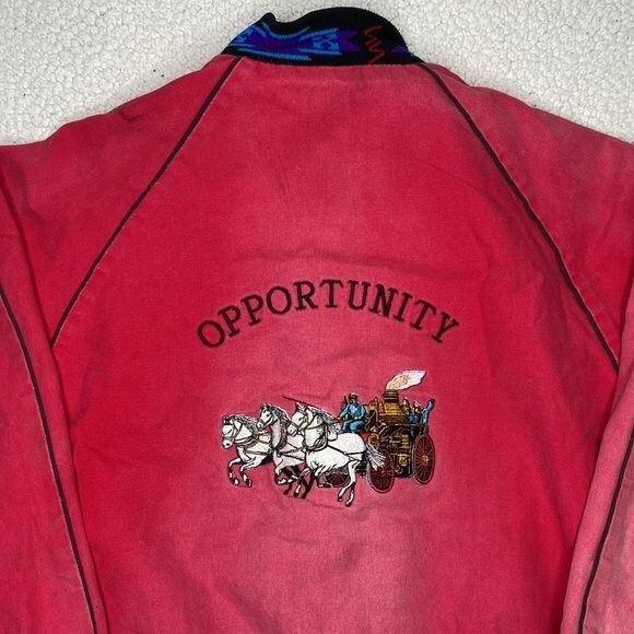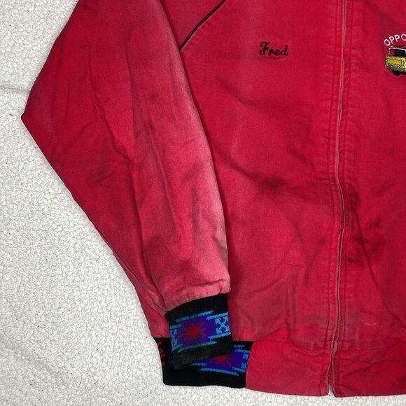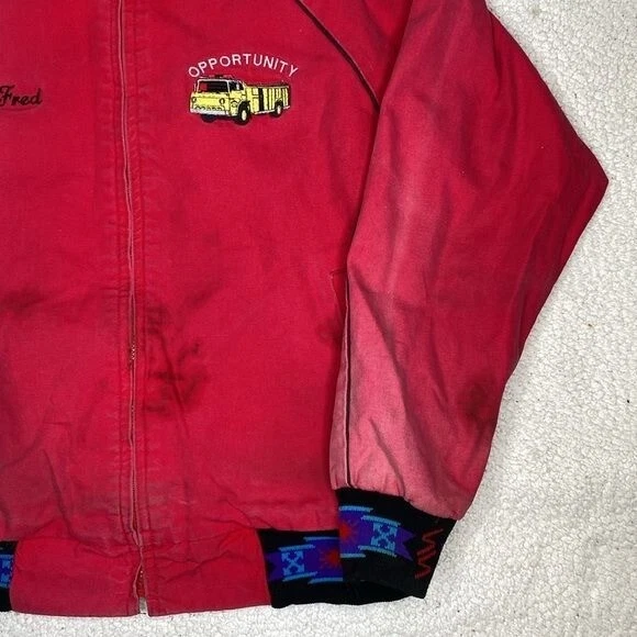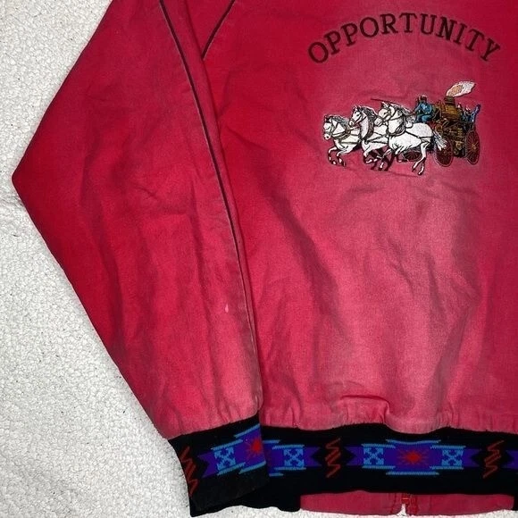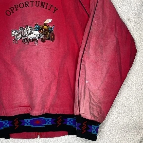 NO SIZE TAG: SEE MEASUREMENTS Faded, stains and some distressing Full zip closure 2 pockets Blanket lined Aztec design Chest and back embroidery Made in USA Length: 27” P2P: 23.5”