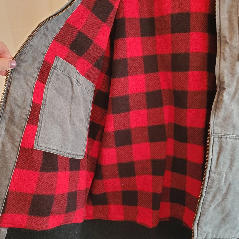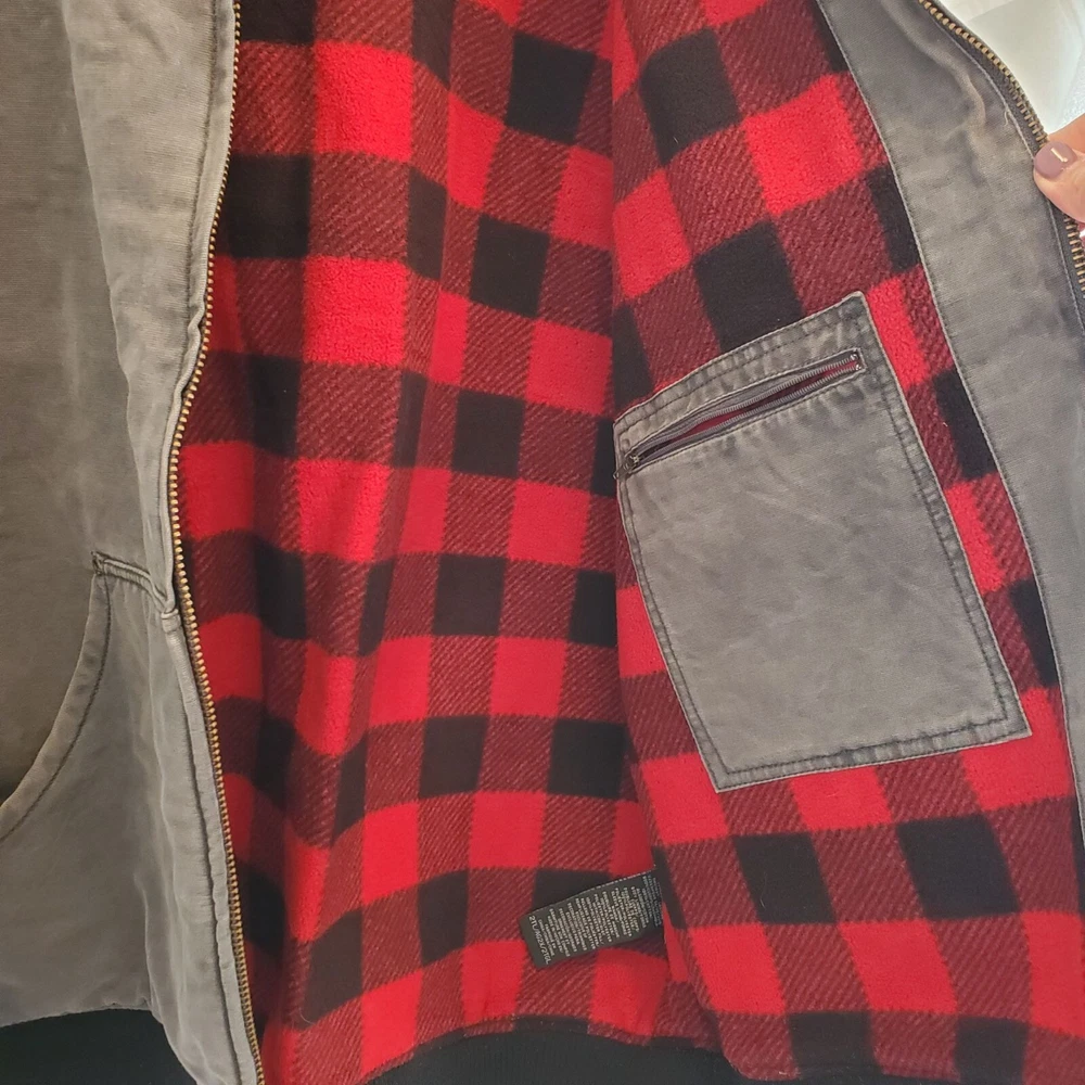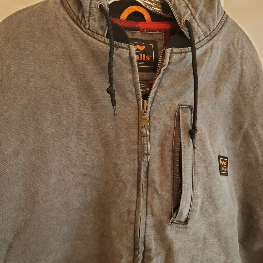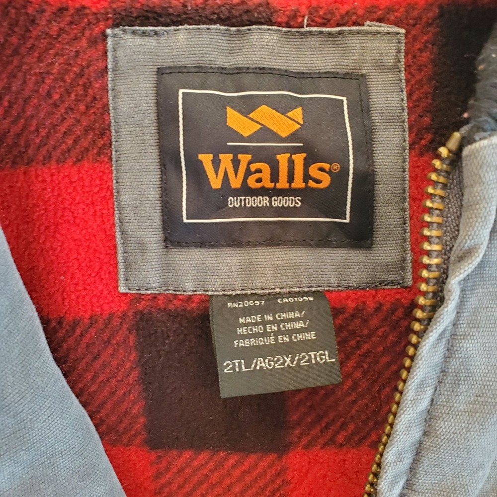 Outer Shell Material: Cotton, Blend Color: Gray Accents: Logo, Zipper Department: Men Performance/Activity: Hiking, Hunting, Walking Handmade: No Jacket/Coat Length: Mid-Length Theme: Outdoor Type: Jacket Insulation Material: Fleece Country of Origin: China Size Type: Big & Tall Style: Bomber Jacket Occasion: Casual, Travel, Workwear Closure: Drawstring, Zip Features: Hooded Vintage: Yes Season: Fall, Spring, Winter Personalize: No Brand: Walls Size: Big 2X Fabric Type: Canvas Fit: Relaxed Pattern: Plaid Lining Material: Polyester