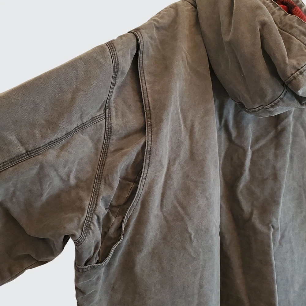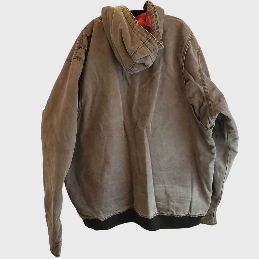 This hooded vintage jacket by Walls Outdoor Goods, crafted from a cotton blend, offers comfort and durability. The buffalo plaid fleece lining provides added warmth, making it suitable for various outdoor activities. A full zipper front ensures easy wear, and the multiple pockets add practicality. • Full zipper front • Multiple pockets • Fleece lining • Hooded design • Ribbed cuffs and hem No visible flaws noted. Size: Mens 2XL Condition: Pre-Owned Good Excellent preowned condition from a pet and smoke free home. All measurements are done on a flat surface. Please see pictures for condition. All offers considered!