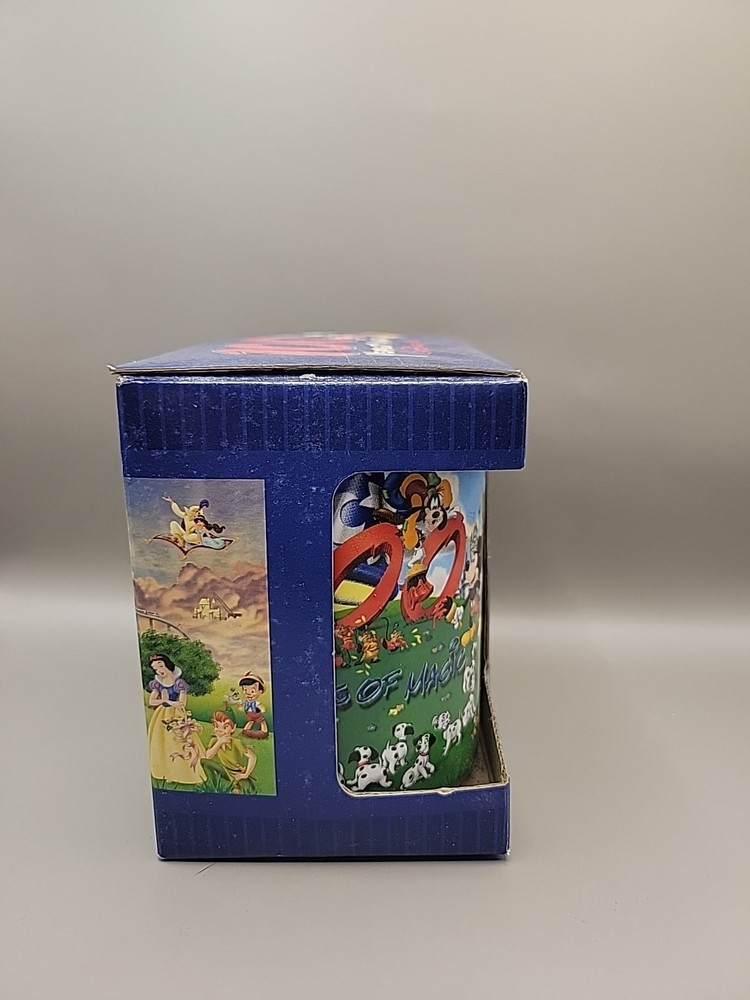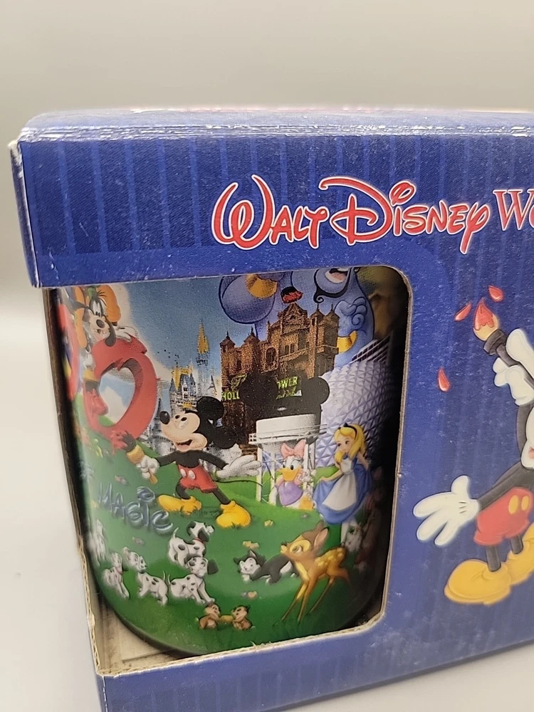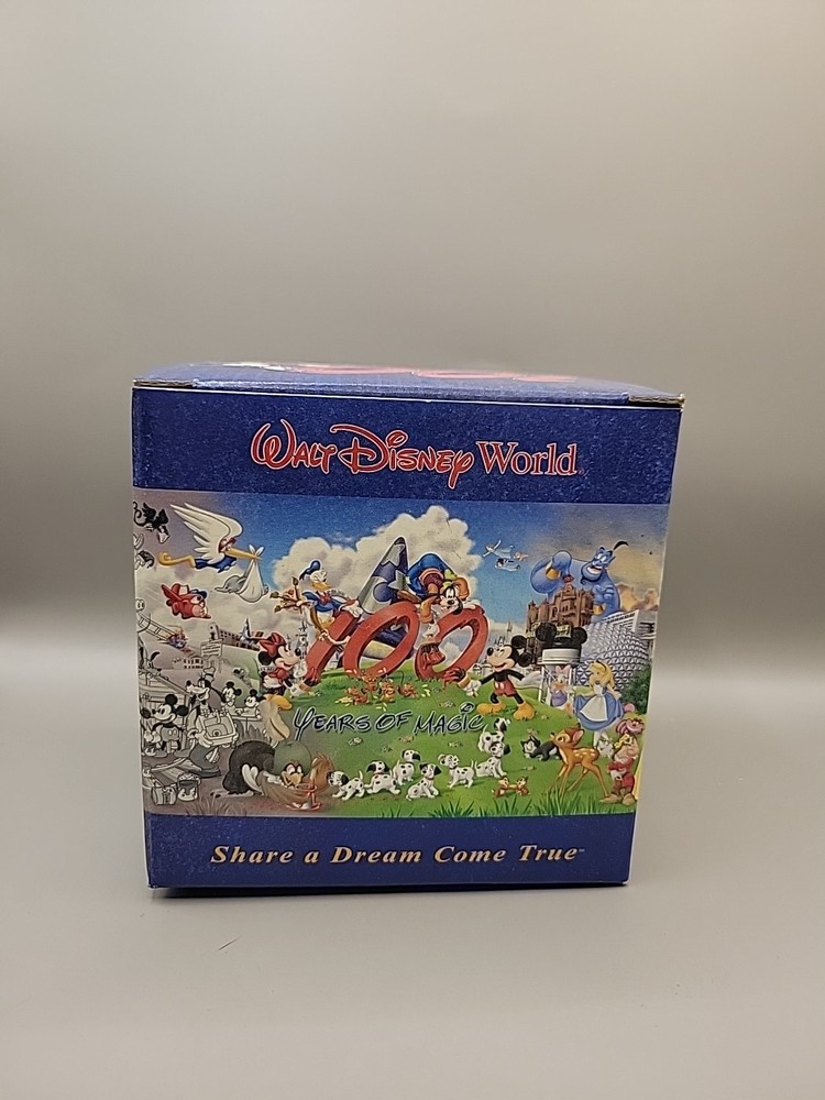 Celebrate a century of enchantment with the Walt Disney World Mug, commemorating 100 Years of Magic. This collectible piece is a must-have for Disney enthusiasts and features the iconic "Share a Dream Come True" slogan, making it an ideal gift for those who cherish the magic of Disney. Crafted in 2001, it stands as a tribute to the enduring legacy of Walt Disney's vision. The mug hails from Thailand and is part of the Disneyana collectibles range, specifically contemporary pieces from 1968 to now. It comes with its original box, adding an extra touch of nostalgia and collectibility. Whether for your morning coffee or as a display piece, this mug is sure to charm Disney fans of all ages.