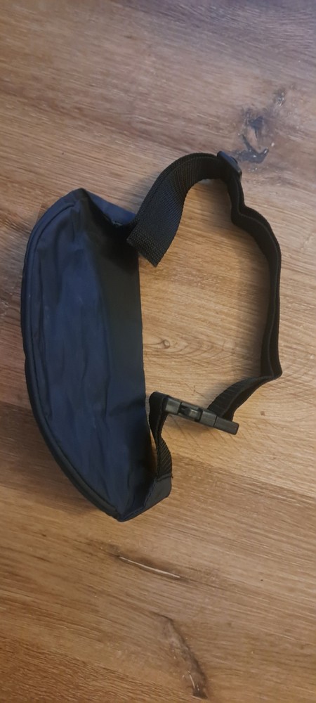 This is a vintage fanny pack from Walt Disney World, featuring Mickey Mouse. The pack is adjustable with a white glove belt and has a black color scheme. It is a one size fits all item and was made in the United States. The brand is Disney and it is not a modified item.