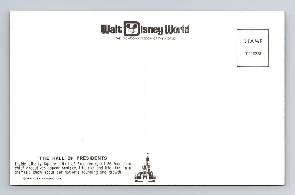Vintage Walt Disney World Hall of Presidents Orlando Florida Postcard