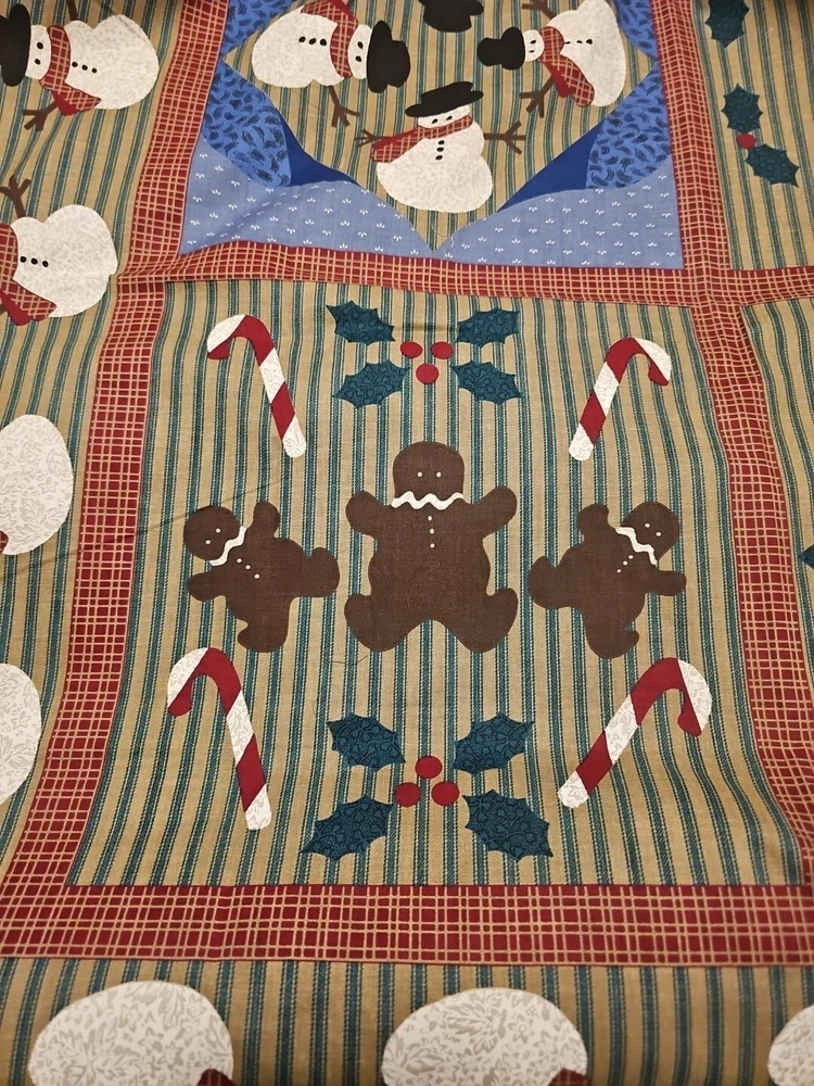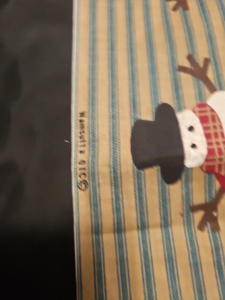 Smoke free home, thanks for looking! Add a vintage touch to your holiday decor with this Wamsutta OTC cotton fabric panel. Featuring a festive pattern of snowmen, gingerbread, and a sleigh, this light fabric is perfect for quilting and crafting. Measuring 36"x34", it is suitable for any quilting project. The fabric is made of high-quality cotton and is quilted for added texture and durability. The multicolor panel is perfect for any holiday-themed project and is sure to add a touch of whimsy to your creations. Whether you are a seasoned quilter or just starting out, this Wamsutta fabric is perfect for all your crafting needs.