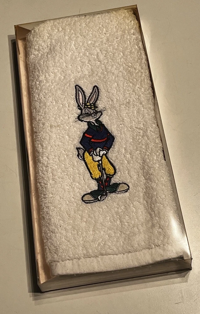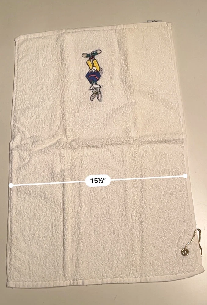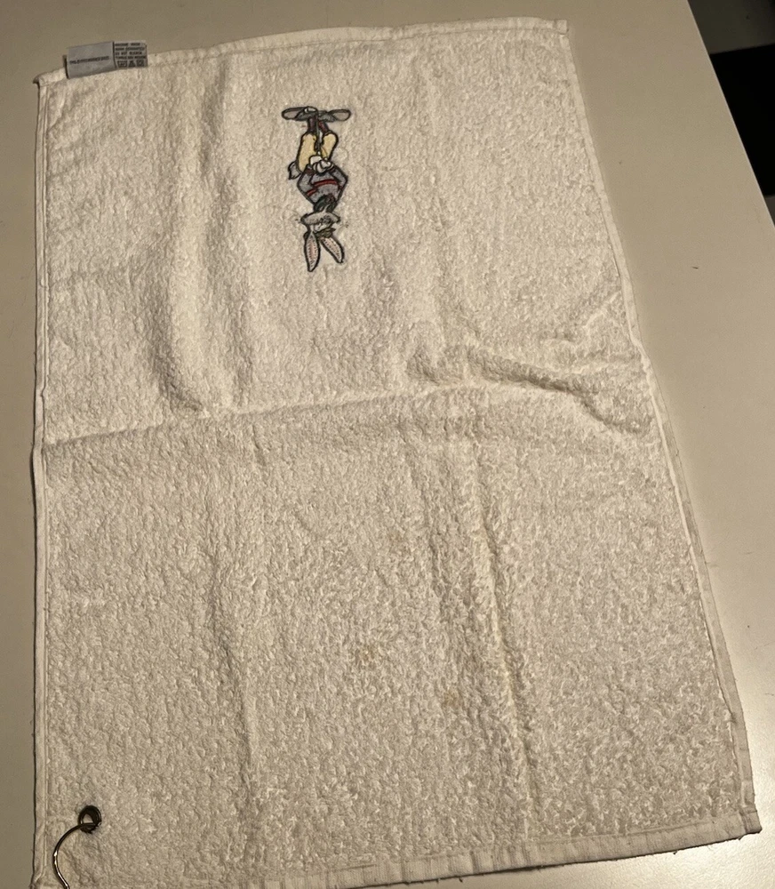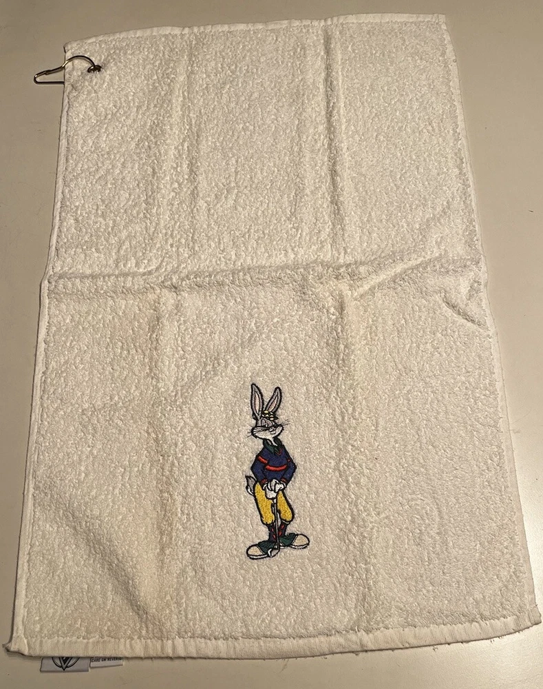 Sport/Activity: Golf Pattern: Solid Brand: Acme Sport Features: With Clip, Embroidered Type: Golfbag Towel Shape: Rectangle Color: White Material: Cotton Country/Region of Manufacture: China Theme: Vintage, Warner Bros Bugs Bunny, 90s