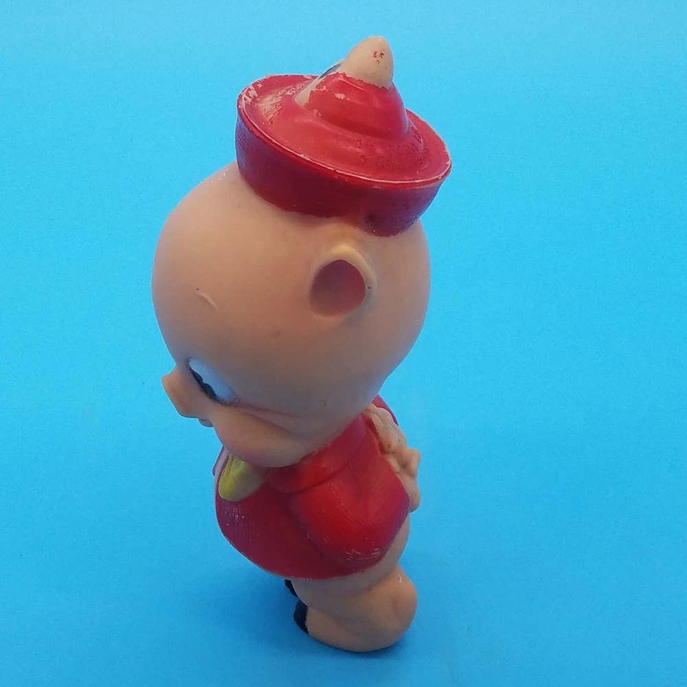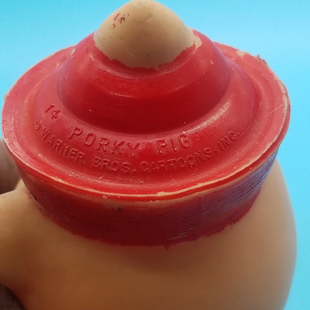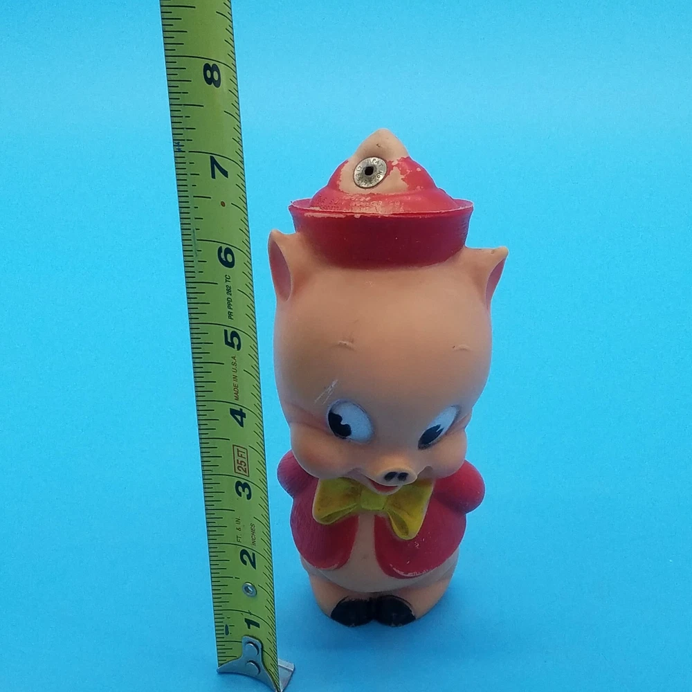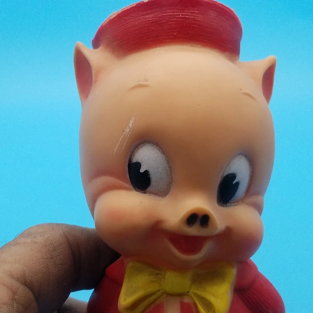 This vintage Porky Pig squeaky toy is a true gem for any fan of animation merchandise. Made by the Sun Rubber Company in the United States, this collectible is a must-have for any serious collector. The vibrant multicolor design and Warner Bros. franchise make it a unique piece that will catch the eyes of everyone who sees it. With its classic design, this Porky Pig toy is perfect for display in any collection or as a playful addition to any room. This item is in great condition and has been well taken care of, with no damage or defects to note. Don't miss out on the opportunity to add this rare piece of animation history to your collection. Nice vintage shape it's very pliable but the squeaker does not work check out the photographs before buying Note: If for some reason you are not satisfied with your purchase, Please contact me Before leaving feedback so I can address any issue you may have and make it right - I want all my buyers to be satisfied. Thank You!