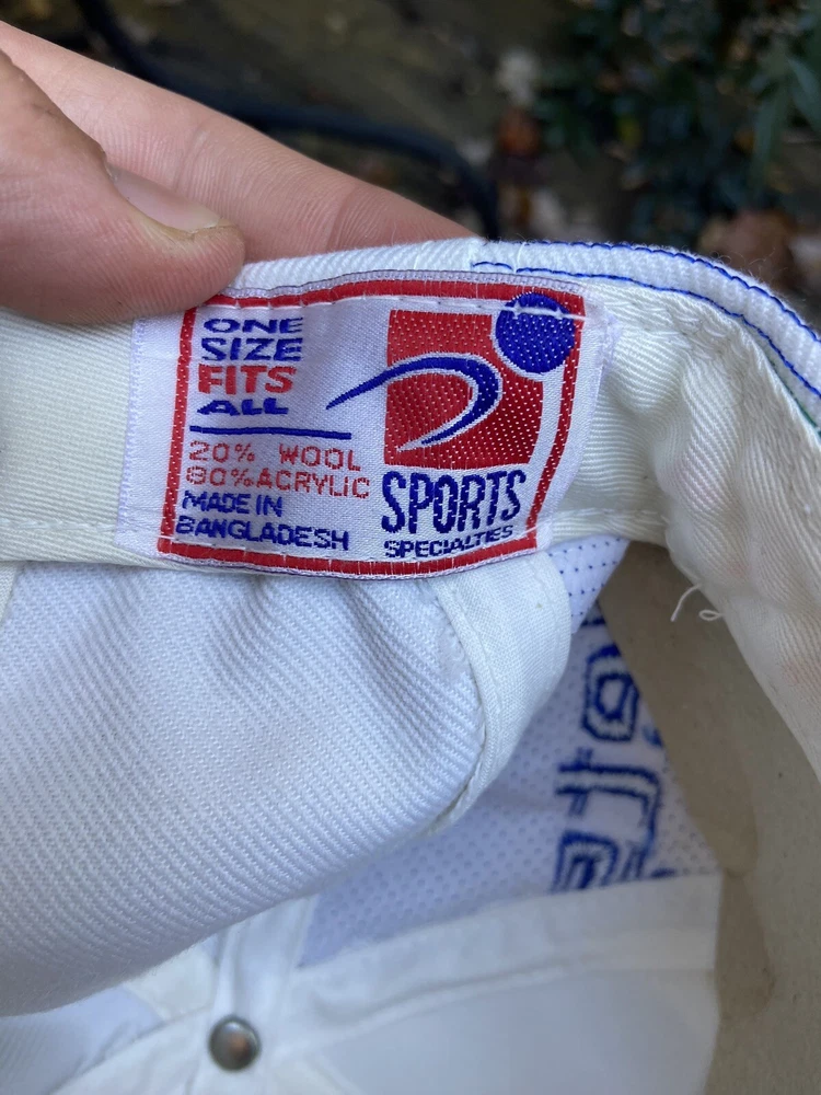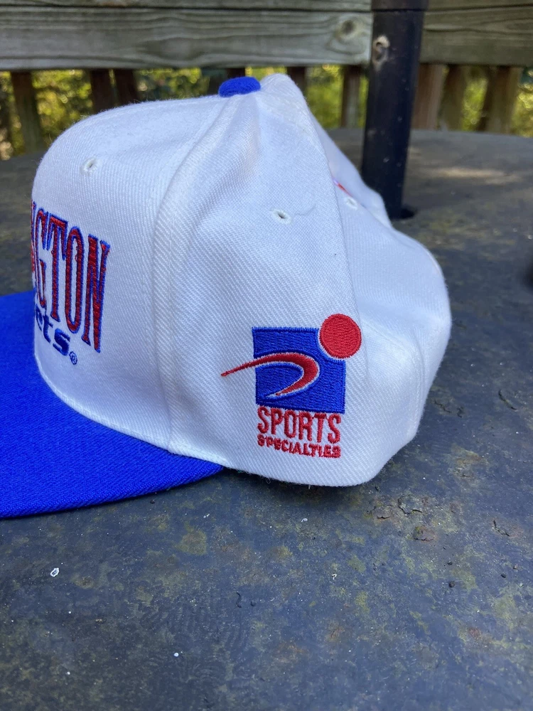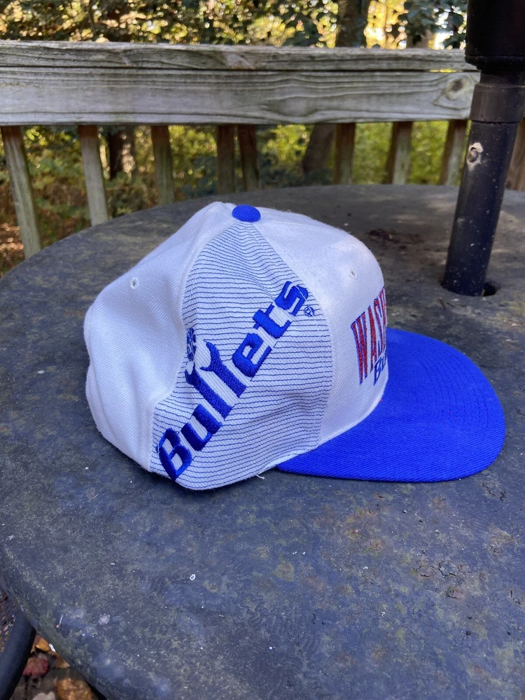 Vintage Washington Bullets NBA Sports Specialties Lasar Shadow Snapback Hat. An insane hat with an awesome script on the front and a super dope side hit of the logo. It's a mix of wool and acrylic. The condition of the hat is amazing as shown in the pictures, there is barely if any wear on the hat, if there is any it's just due to the hat being in storage, and the inner brim looks very good as well, but a simple clean should take care of it. An awesome piece for any vintage collector and any fan of vintage hats.