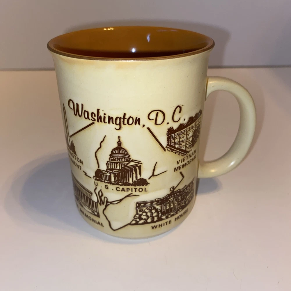Vintage Washington DC Capital Souvenir Coffee Cup Mug Engraved Tan Brown