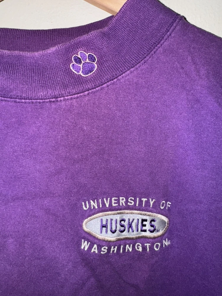 Vintage Washington Huskies University T Shirt Men’s 2XL Turtle Neck Purple 26x29