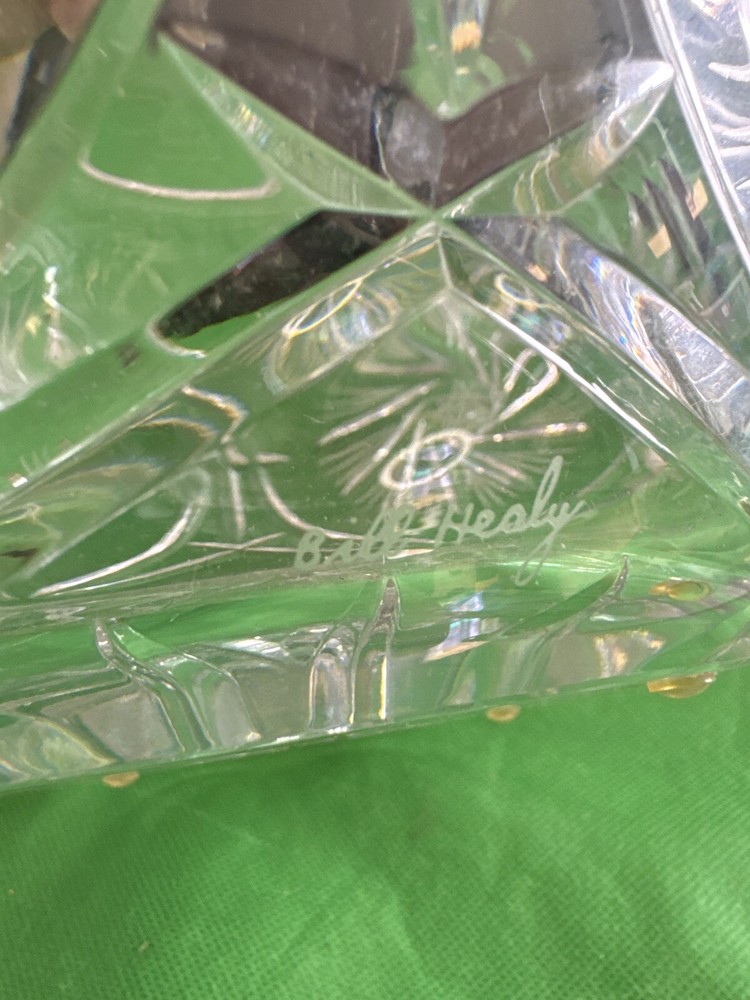 Vintage Waterford Crystal Bowl Signed by Bill Healy – Stunning Cut Glass Design Description: For sale is a beautiful vintage Waterford Crystal bowl, personally signed by the renowned craftsman Bill Healy, known for his contributions to Waterford’s timeless designs. This bowl showcases exquisite hand-cut patterns and brilliant clarity that exemplify the finest quality of Waterford Crystal. Features: • Brand: Waterford Crystal • Designer: Bill Healy (signature engraved at the base) • Dimensions: 6 inches tall, 5.5 inches in diameter • Material: Genuine lead crystal • Condition: Excellent vintage condition with no chips, cracks, or scratches. The intricate cuts and polished finish remain immaculate. Details: This stunning piece is a must-have for collectors of fine crystal or anyone looking to add an elegant statement piece to their home decor. Ideal for display or use as a centerpiece, this bowl exudes luxury and craftsmanship. Shipping and Handling: The item will be carefully packed and shipped via [your shipping method]. Tracking will be provided for safe delivery. International shipping is available—please contact me for a quote. Don’t miss this rare opportunity to own a piece of Waterford Crystal Let me know if you need any adjustments or if you’d like help with pricing it!