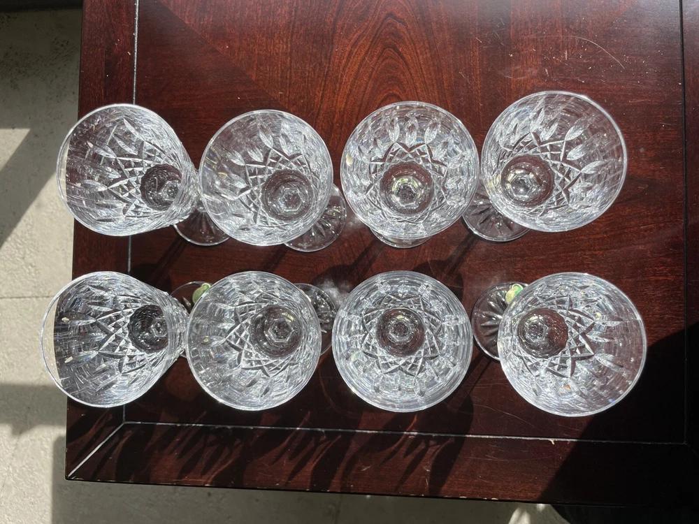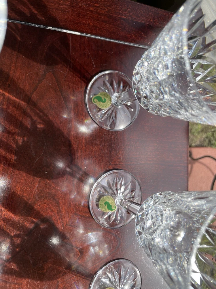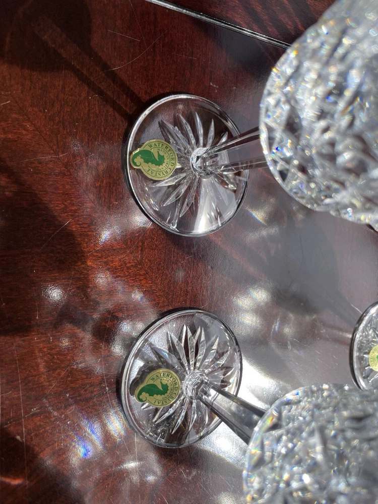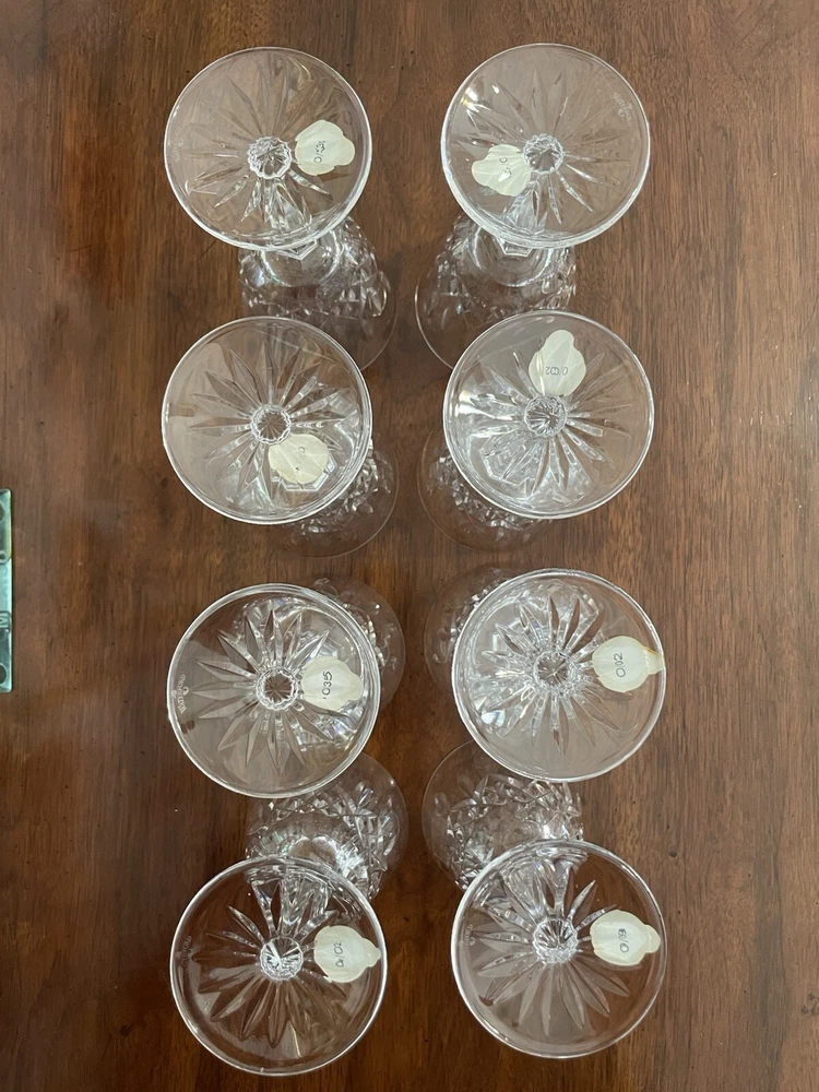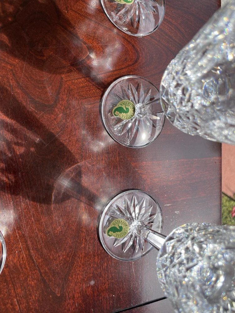 This are all in excellent condition. Please see the many photos I put to show that. All glasses are signed with the Waterford mark and sticker on it. No box. Shipping via USPS ground advantage. Shipping cost includes shipping handling and materials. Ships in the U.S.A. only. Happy to send more photos if needed. Please be attentive to the photos for any information on the condition of the items. The items are sold as is.