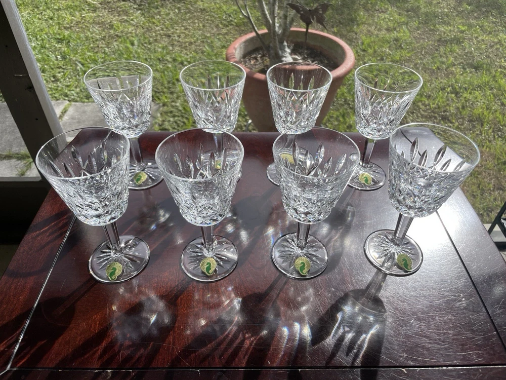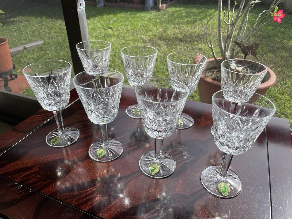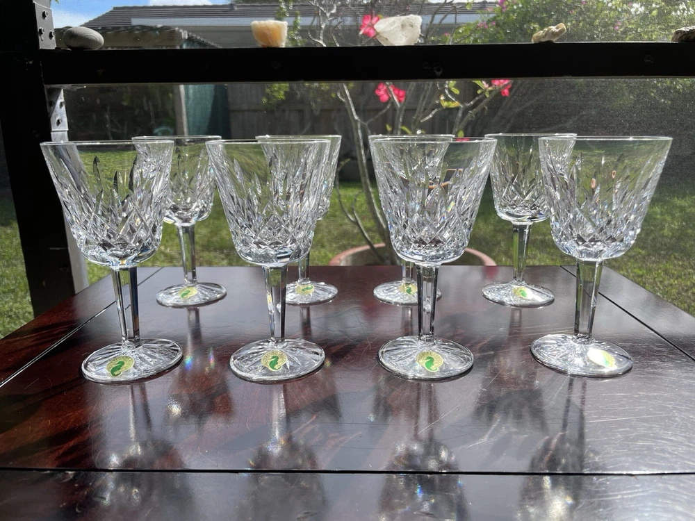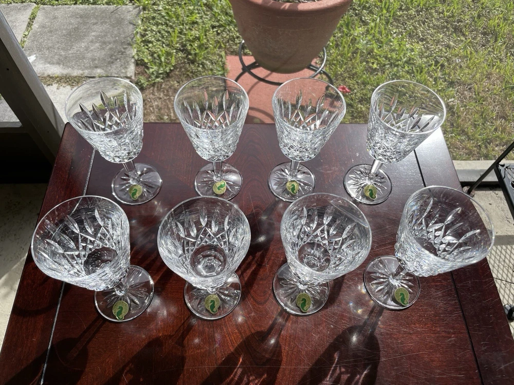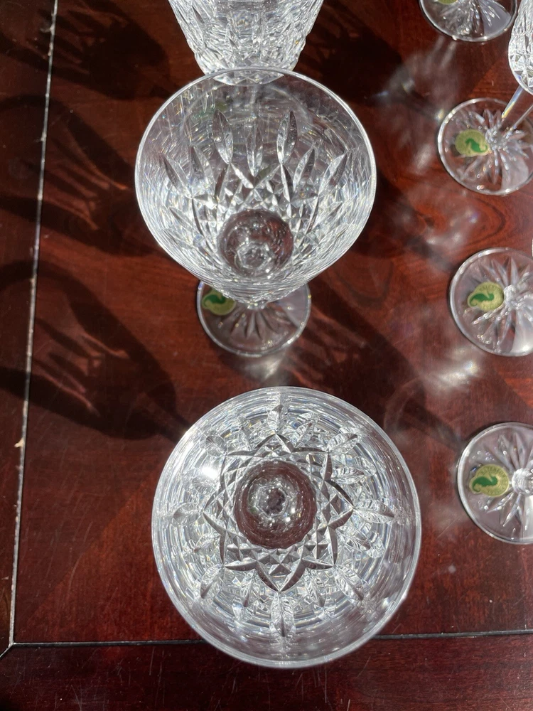 This are all in excellent condition. Please see the many photos I put to show that. All glasses are signed with the Waterford mark and sticker on it. No box. Shipping via USPS ground advantage. Shipping cost includes shipping handling and materials. Ships in the U.S.A. only. Happy to send more photos if needed. Please be attentive to the photos for any information on the condition of the items. The items are sold as is.