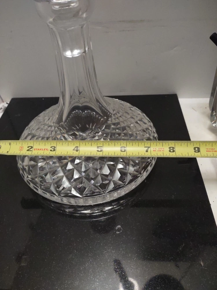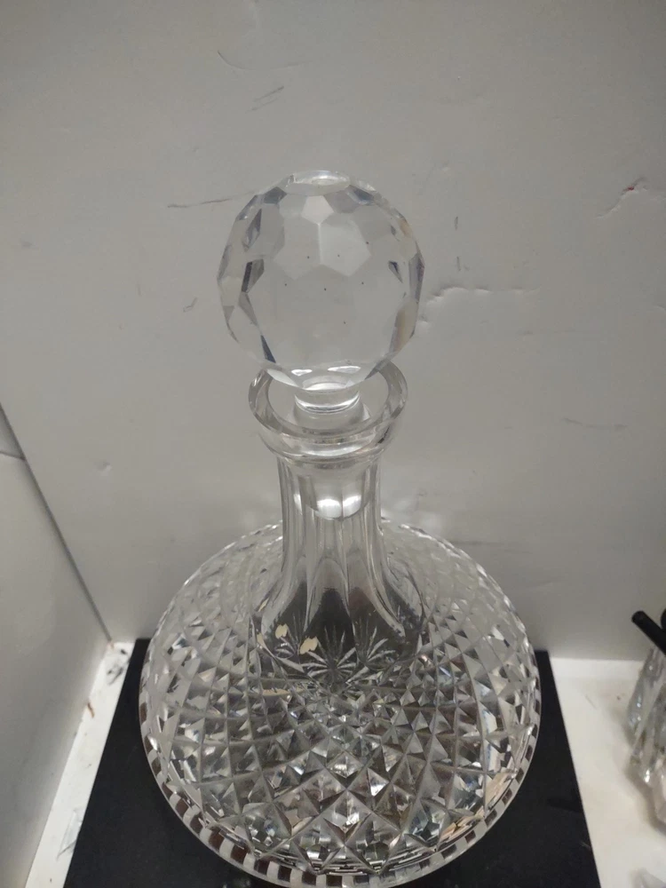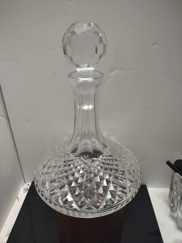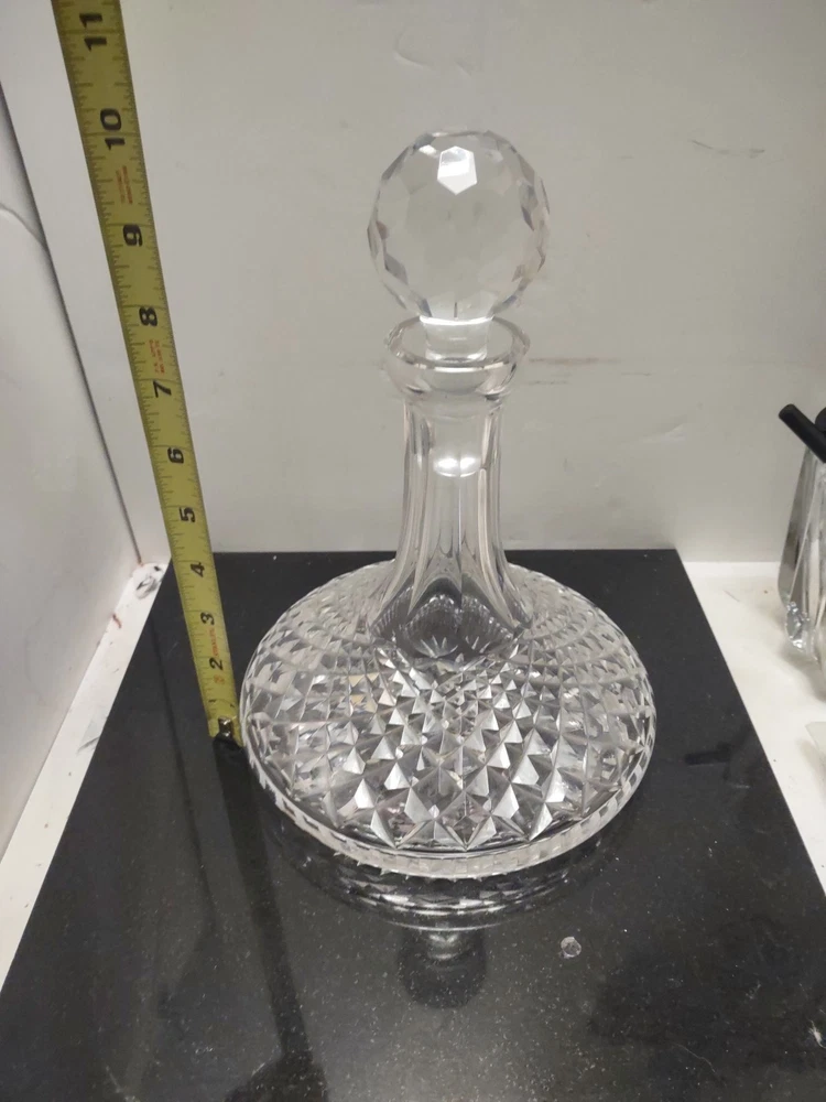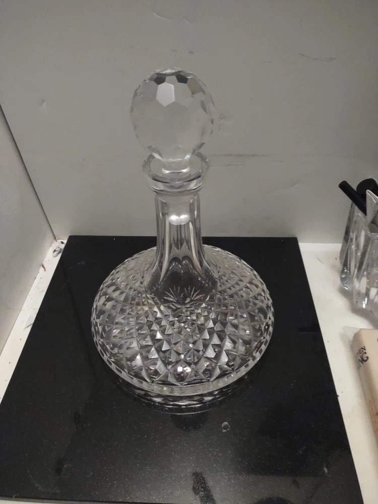 This vintage Waterford crystal ship's decanter is a beautiful addition to any collection. With its intricate details and premium glass material, it is perfect for entertaining guests or as a display piece. The unique pattern adds character to any table setting, and the brand name guarantees quality craftsmanship. This wine decanter is a must-have for any collector or enthusiast. Stunning estate find in excellent condition see pictures for details does have smudged Waterford marker and sticker made in Ireland perfect addition to any Waterford Crystal collection beautiful display piece could make a great gift Shipped right out USPS ground advantage.