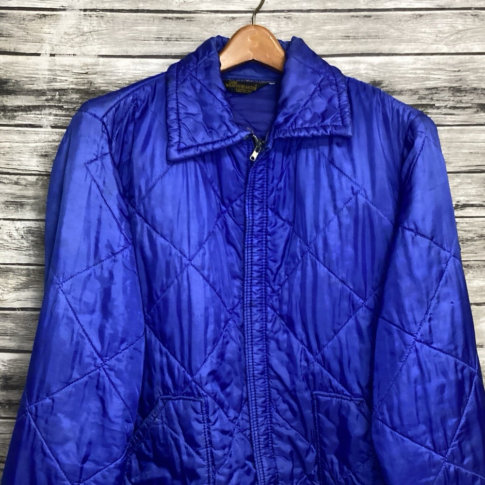 Vintage Weathercaster Puffer Jacket Mens Large Blue Full Zip 70s 80s Brand: Weathercaster Size: Mens Large (Chest "23.5 / Length "25.5) Condition: Pre-Owned / Good Used condition with minor signs of ware, please see photos for any specific defects or details worth noting. If item is used the item will be washed and inspected before listed. Items are stored in a smoke and pet free environment. We offer combined shipping discounts on multiple item orders. Any questions feel free to DM me thanks!!!