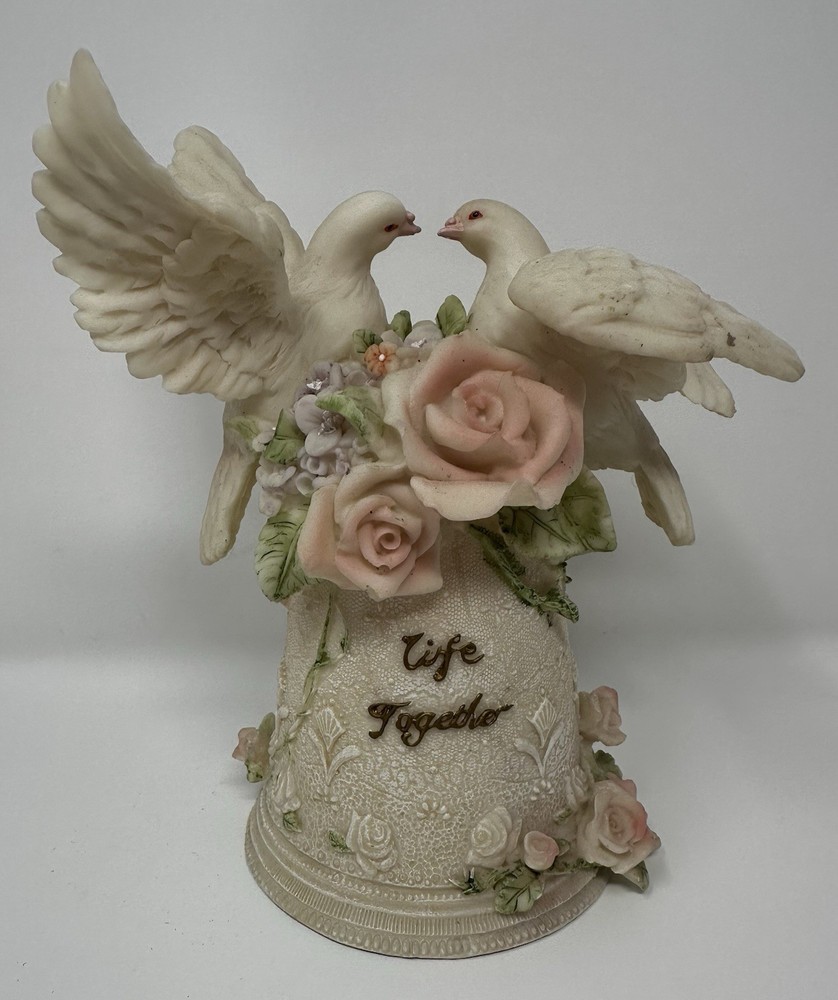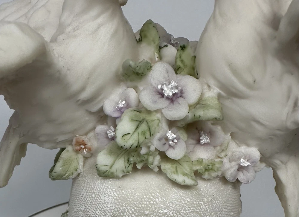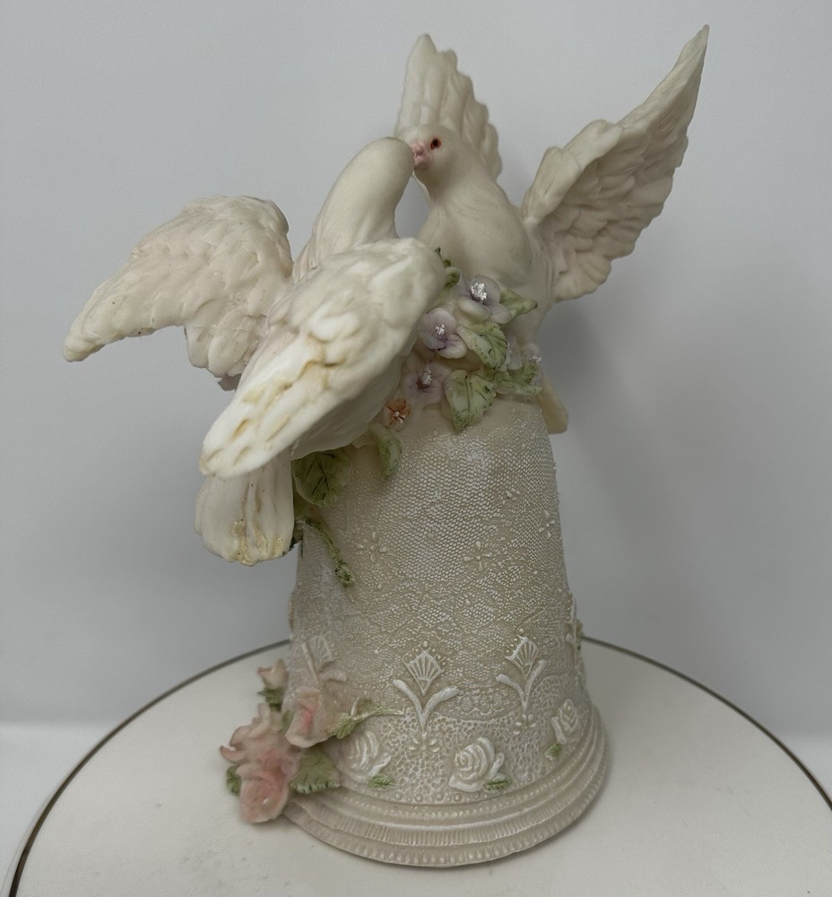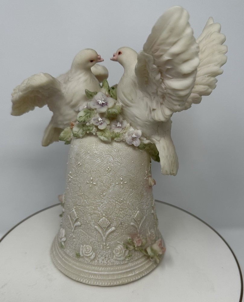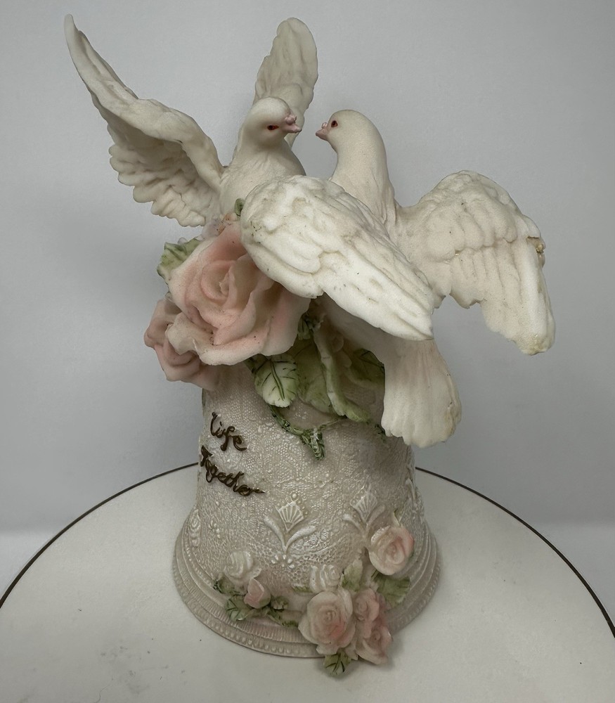 Embellish your wedding décor with a touch of timeless beauty from the Vintage Wedding Elegance Collection. This exquisite cake topper/ décor piece features a stunning arrangement of white dome with pink roses and white doves, meticulously crafted from resin to capture the essence of Roman style. The subtle interplay of pink and white hues creates an enchanting ambiance that will elevate the aesthetic of your special day. Crafted with care, this original MRH piece, dating back to the 1970’s, stands as a testament to the artistry of its era. Whether it's adorning your cake or serving as a decorative element, this piece is sure to leave a lasting impression. Estate sale, item is in excellent pre owned condition with no chips or cracks.