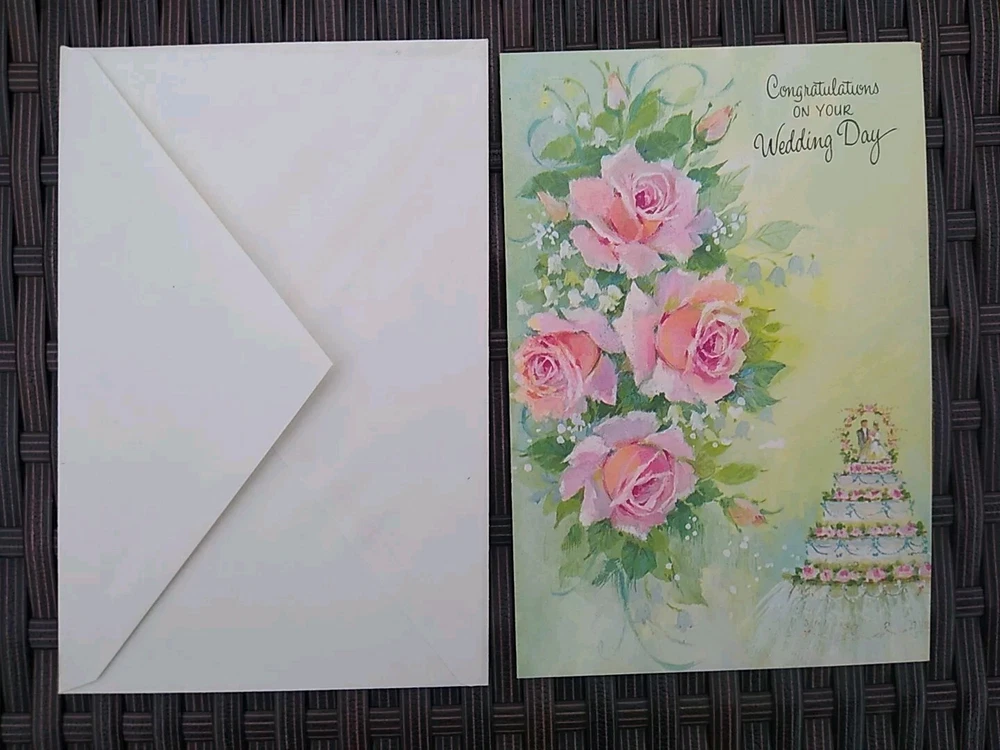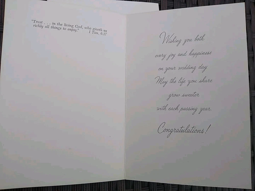 Vintage Wedding Greeting Card Congratulations Bride & Groom Bible Verse Inside