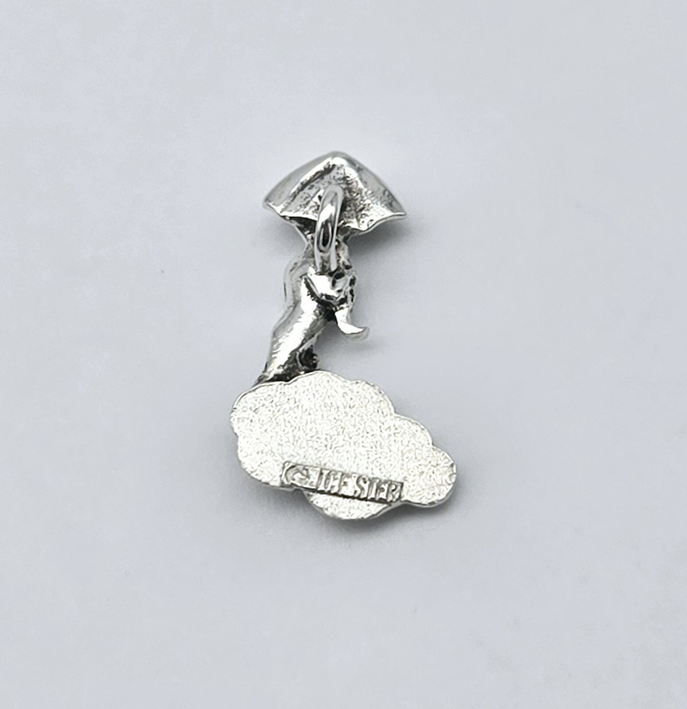 Vintage Wednesday Day of The Week Umbrella Sterling Silver Charm Pendant - 2.2g