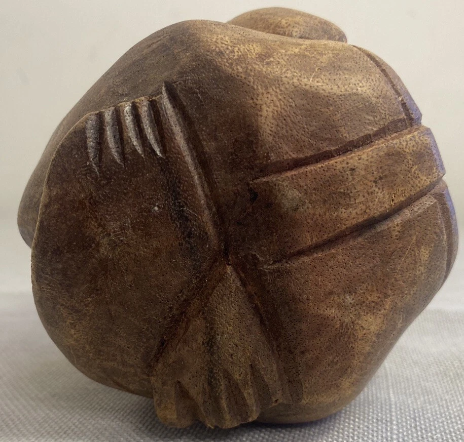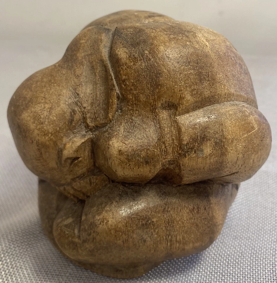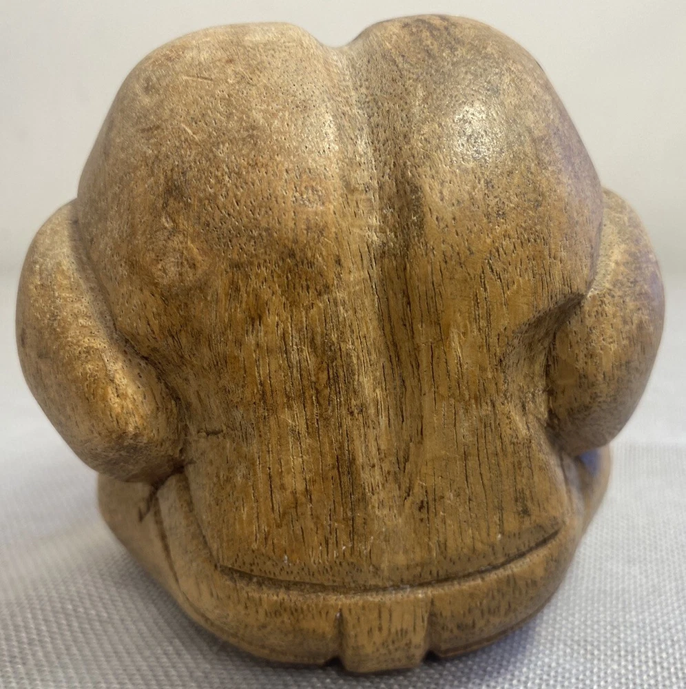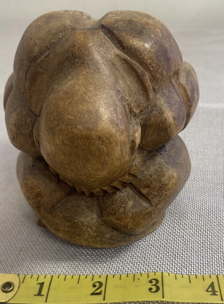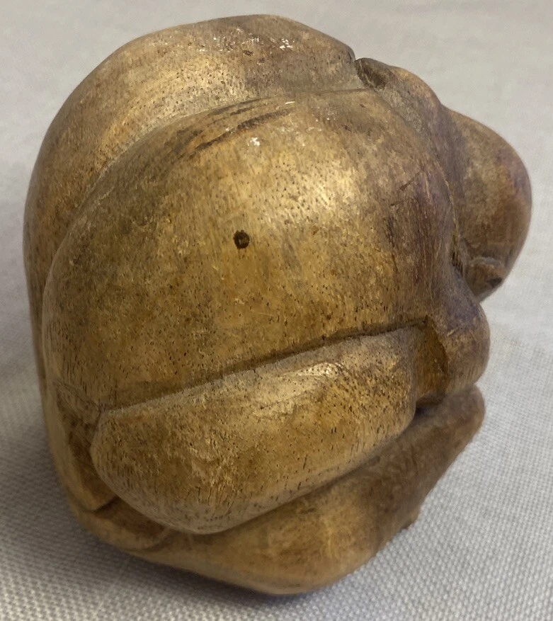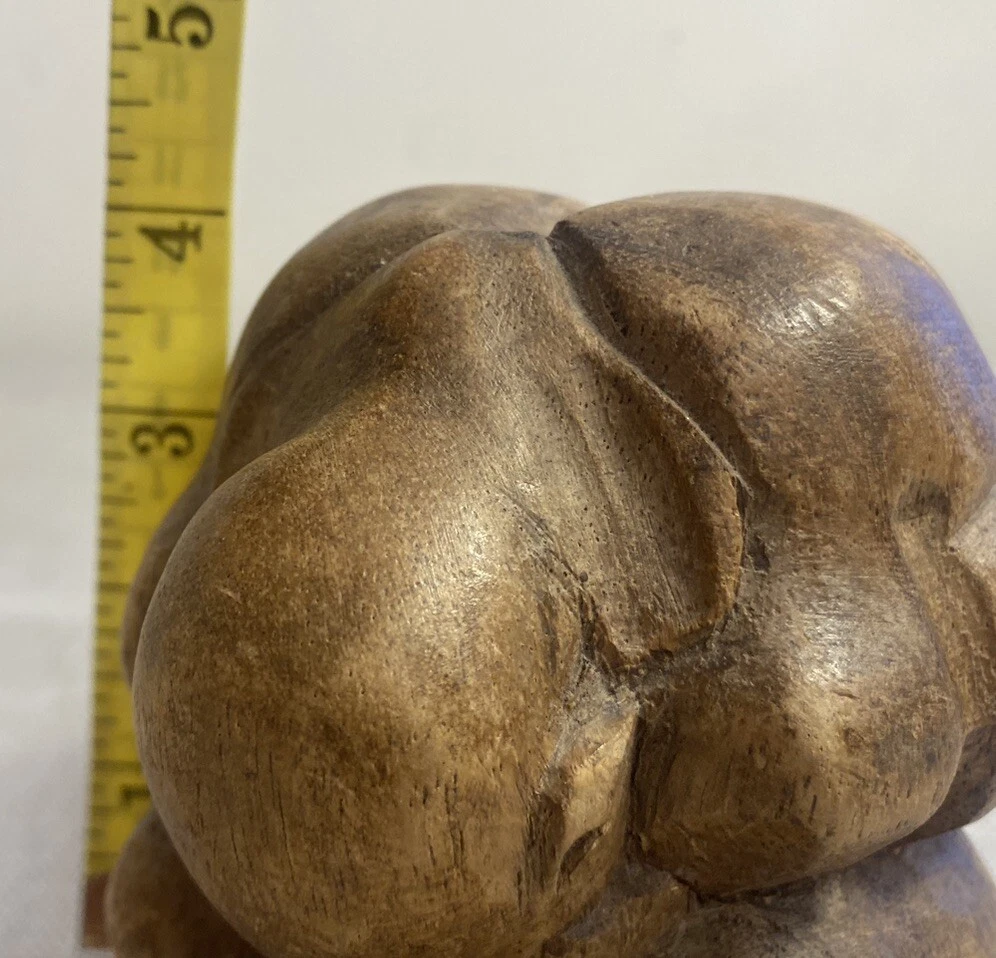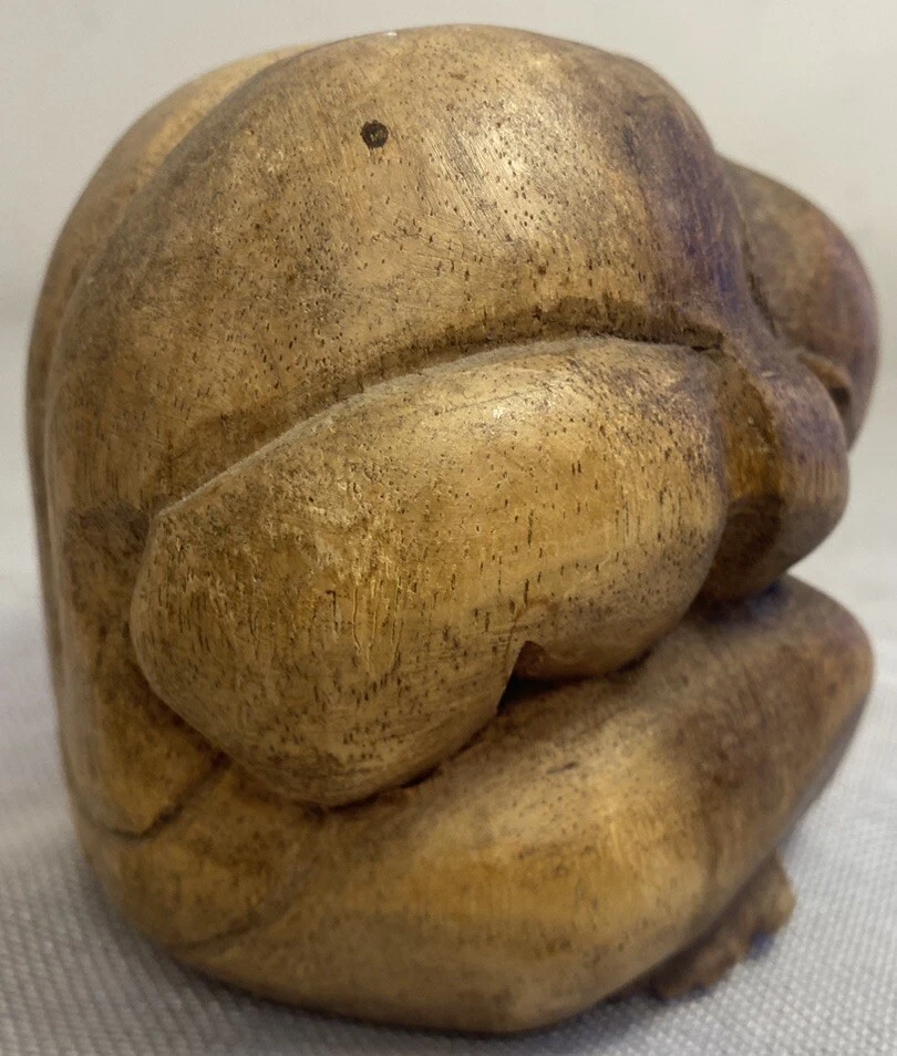 Vintage Weeping Buddha Medium Tone Hand Carved Wood Sculpture Yogi Man Figure Used, no issues, nice condition K) for inventory purposes only
