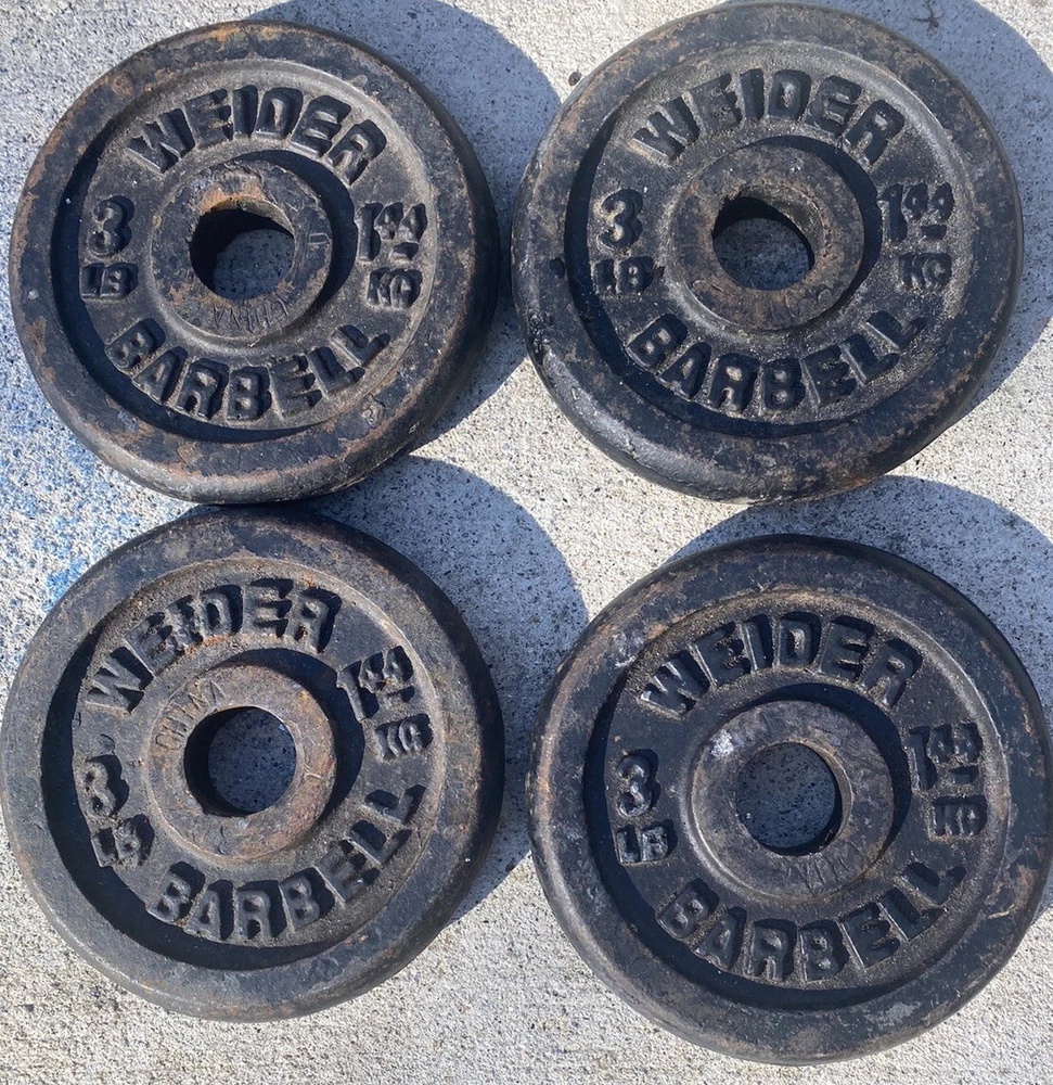 Vintage Weider 1” Hole (4) 3 Pound Barbell Plates