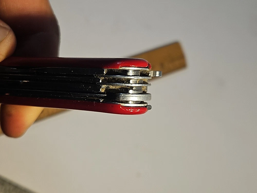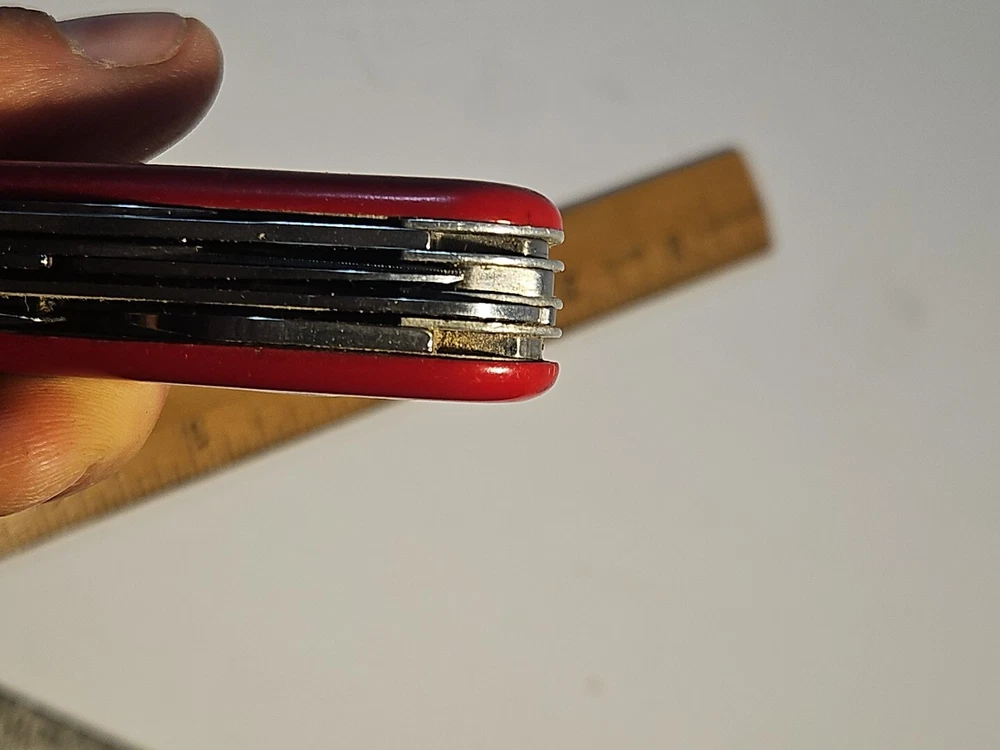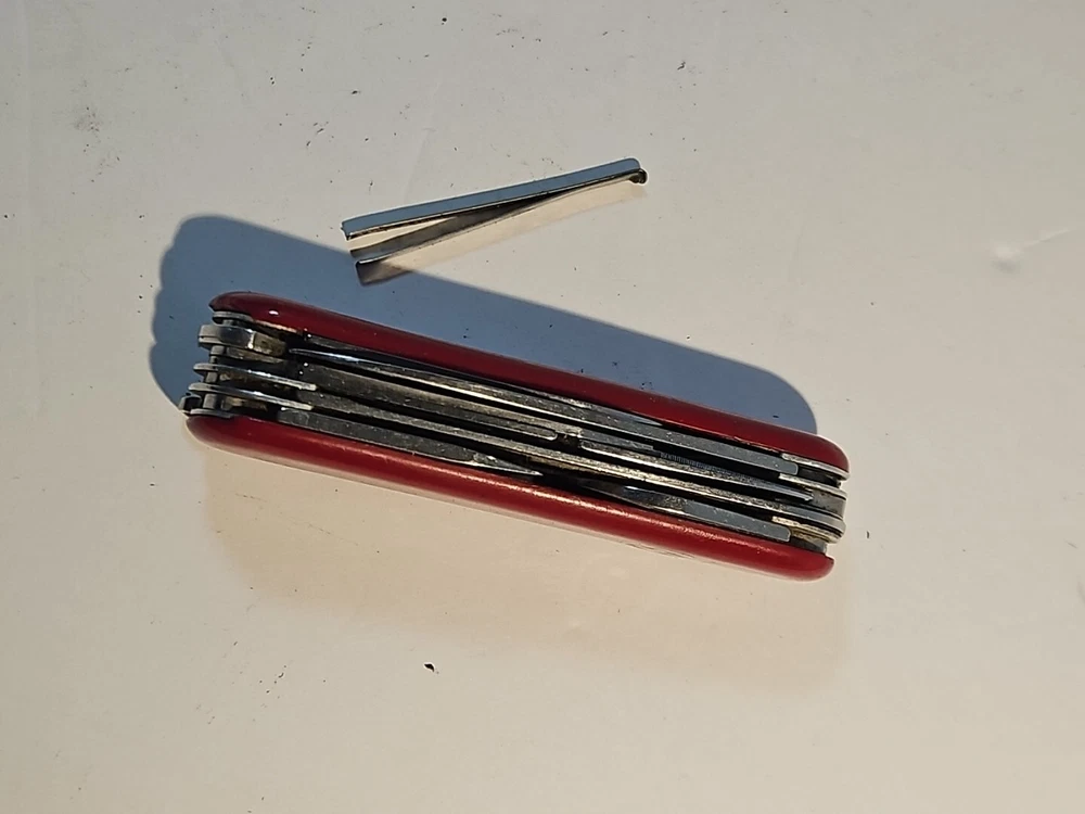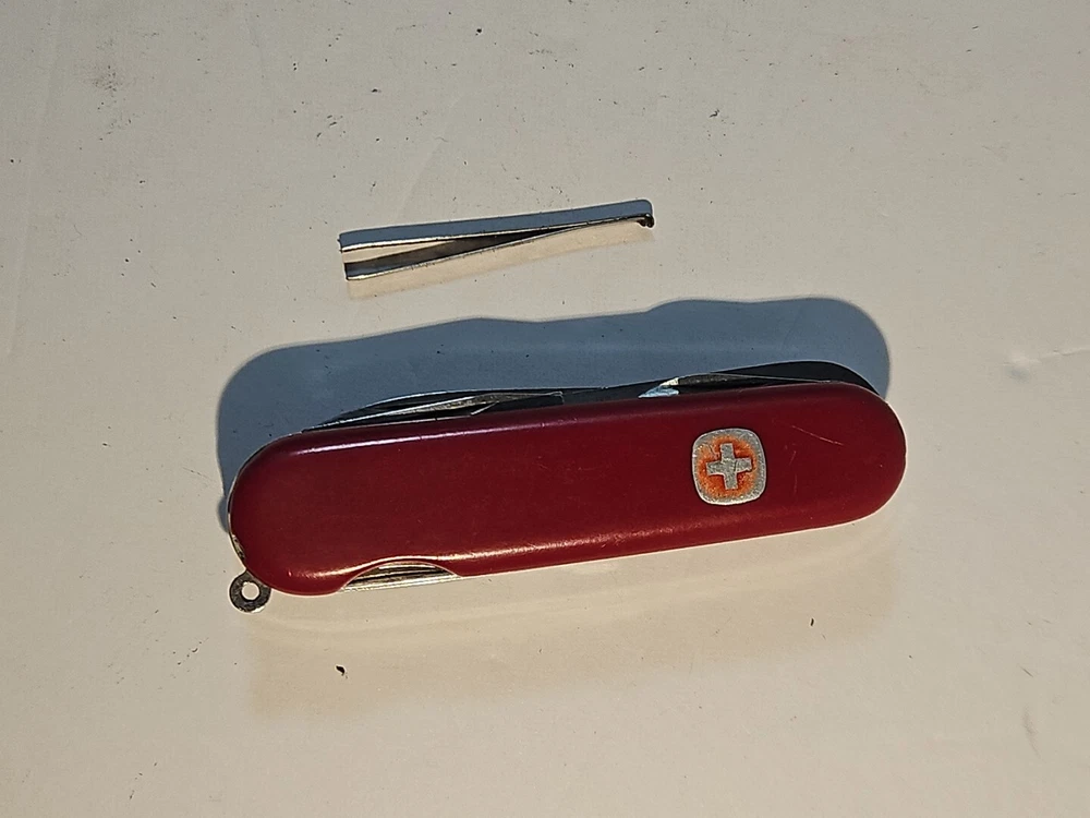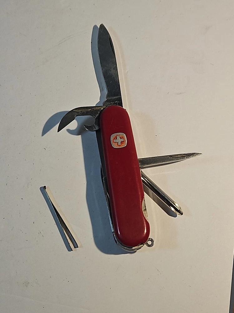 Wenger Backpacker II Swiss Army Multi Tool Retired Vintage Combo-serrated Fair This unit has imperfections. Wear on blades, markings and chips on red cover. See pictures. Tweezers included, but no toothpick. See pictures. Product will be shipped timely and packaged with care. Offers are encouraged. Please feel free to reach out with questions. Please see pictures. Thank you. Good used condition. Light wear from age and use. Markings from age and use. See pictures This Wenger Backpacker II Swiss Army Multi Tool is a must-have for any outdoor enthusiast. With a variety of tools including a punch, corkscrew, saw, and bottle opener, this multi-tool is perfect for any situation. The blade is made of stainless steel with a serrated edge and drop and clip point blade type. The handle is made of durable plastic and the tool is designed for ambidextrous dexterity. This original and authentic Wenger multi-tool is perfect for collectors and adventurers alike. The tool is designed for ease of use and safety, with a slipjoint lock type. The Backpacker II model was made in Switzerland and has a red color handle. Don't miss out on this amazing collectible and functional item. HLB2