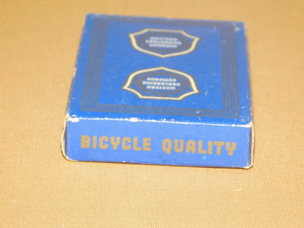 YOU ARE BIDDING ON.... . . VINTGE WESTERN CARLOADING COMPANY BICYCLE QUALITY PLAYING CARDS UNOPENED SEALED .. . BOX SHOWS HANDLING/AGE WEAR..HAS SCRATCHES/EDGE WEAR/PAINT LOSS/AGE DISCOLORATION... ...PLEASE VIEW PHOTOS FOR CONDITION.***PLEASE E-MAIL IF YOU HAVE A QUESTION OR WANT AN ADDITIONAL PICTURE....PLEASE VISIT MY EBAY STORE FOR ADDITIONAL VINTAGE ITEMS..THANK YOU***3Q-BX 3114-xxxx