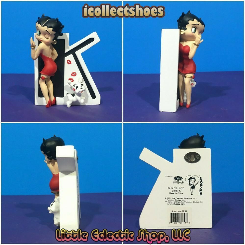 BETTY BOOP® Vintage 2005 Alphabet Collection by Westland Giftware Item# 6751 - Letter K for Kiss Resin Figurine - New in Gift Box All alphabet letters are about 4 inches tall Can hang or stand Retired/Discontinued Product Line ™ & © Fleischer Studios, Inc. All Rights Reserved Worldwide Welcome We are Authorized Dealers of the products we sell on eBay. We purchase our items brand new, direct from the artist or major manufacturers. (If this is a used item it will be listed on eBay as used - thank you) We try to open and inspect the quality of all items before we photograph and list on eBay. Items are stored in our smoke-free warehouse until sold and shipped out. Boxes with dents or scratches are not considered "damaged" and cannot be replaced. We do not offer an overnight shipping option We ship same day or next day We reserve the right to use the most economical shipping method on all items with free shipping. If item does not ship free - don't get stuck with a $100 max reimbursement on a $400 item Please add shipping insurance at time of purchase to cover full value of your item We may add signature confirmation to expensive items to ensure proper delivery eBay International Shipping All items purchased are valued at the price paid and ship as merchandise to an eBay International Shipping hub. eBay International Shipping offers both Duties Delivered Unpaid (DDU) and Duties Delivered Paid (DDP) options to buyers. Currently, the option to be used is predefined for every transaction based on the item price, item weight, and buyer shipping country. Later this year, eBay International Shipping will enable buyers to choose how they prefer to have their shipment cleared through customs ? using DDP or DDU. Returns All International return inquiries need to be directed to eBay's International Shipping department. Domestic returns will vary per item and listing. Returnable If requesting to return undamaged returnable item: 1.) Buyer/Seller responsibility for shipping costs varies depending on the item & reason for return. 2.) If any of the original packaging is missing or unusable please inform us when you contact us. 3.) Needs to arrive back (within 5 days) in it's original entirety before any refund amount will be processed. Non-Returnable We DO NOT accept return requests for no return listings. Most no return listings pictures are of the actual item for sale, not stock photos. If we list an item with defects we try to picture them clearly and will reference if it is defective in our description. If you decide to purchase a non-returnable item *ALL SALES ARE FINAL* , please do not ask to return your purchase. If Damaged International Buyers: When your purchase arrives at eBay's International Shipping Hub our responsibility and control of your purchase ends. There is little we can do except send you the tracking#. Please contact eBay's International Shipping if you have issues with receiving or damage to your purchase, Thank You. This disclaimer is to cover that rare occasion an item arrives broken. Sorry- We do not offer replacements If your item arrives damaged "it is not our doing" and becomes the carrier's financial responsibility to reimburse the package value. Please let us know within 3 days and send photos for the on-line claim. (include photo of outer box with our shipping label/tracking#) Claim options are: 1. Buyer can file the online claim and receive the payment directly (fastest option) 2. We do the claim and credit the initial payment after we receive the reimbursement (this can take 4-6 weeks depending on the carrier) Please retain the entire contents of the package and box until the claim process is completed. After the claim is settled you can do whatever you choose with the item you purchased. 3. Or, a buyer can choose to utilize eBay's Money Back Guarantee. (Or...if claiming an item is not as described) Our process for this is: a) Item will need to be shipped back (All items-No exceptions) b) Buyer is responsible for return postage c) Item must be back to us within 5 business days in it's original entirety before any refund amount is processed. Little Eclectic Shop, LLC We are a small mother-daughter online eBay store specializing in decorative collectibles. If you like our products and service - tell your friends, spread the word - support our small business. ~ Remember ~ Today is the last day of shopping...until tomorrow! Cora and Jacque Thank You For Visiting Our eBay Store Listing