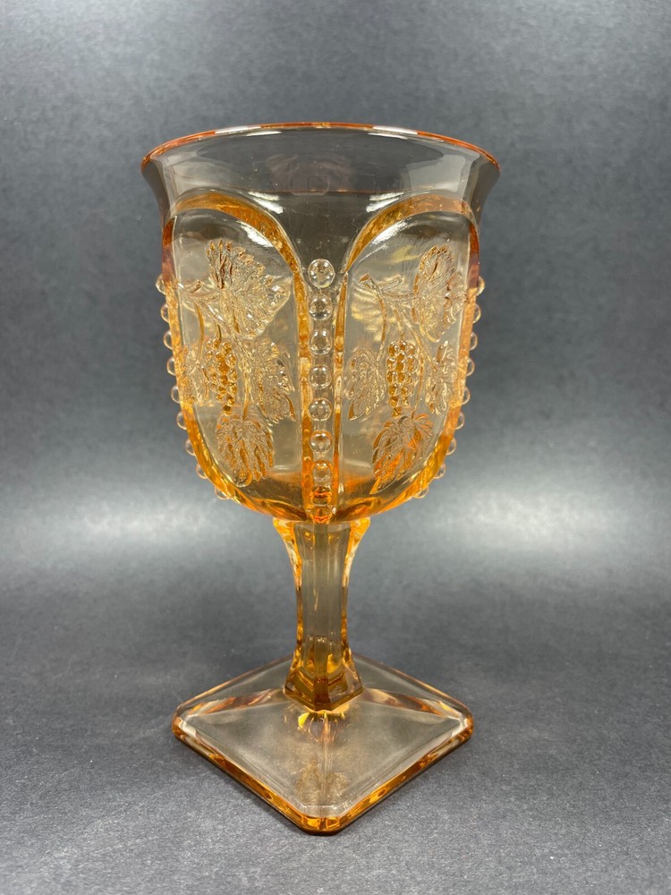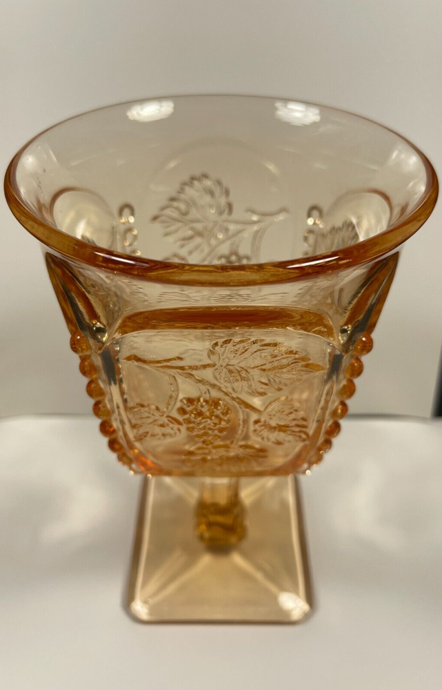 Westmoreland handmade amber peach wine glass/goblet. Rare item. Replacement or addition to an existing set. It is in very good condition, no chips or cracks. It is clean. Measures (approx.): 3.75" DIA rim, 6.25" H. It has the original sticker. Please see photos for more details. Please note that the item is vintage and may show signs of wear. We have done our best to honestly and accurately describe and photograph the item, including possible flaws. What you see are the actual photos of the item being sold. If you have any questions regarding the item, please ask! We DO NOT SELL outside United States. SHIPPING The item will be shipped within three business days after receipt of payment. We ship via USPS to any location within the 48 continental United States, NO INTERNATIONAL SHIPPING. Shipping is calculated by EBAY based on the weight and size of the item plus packaging. We can combine shipping in case you buy multiple items that can be safely shipped together. Thanks for looking!
