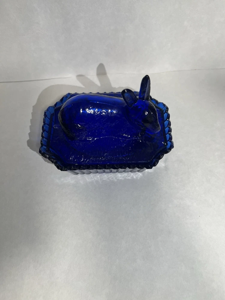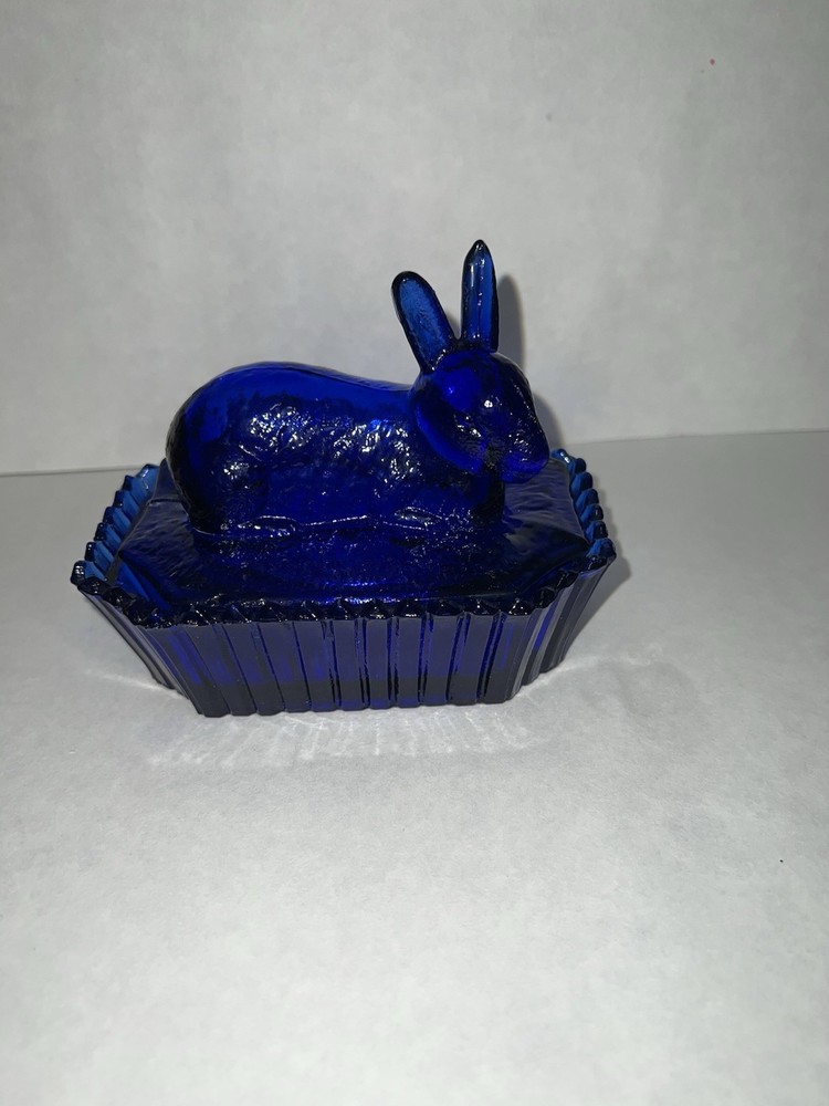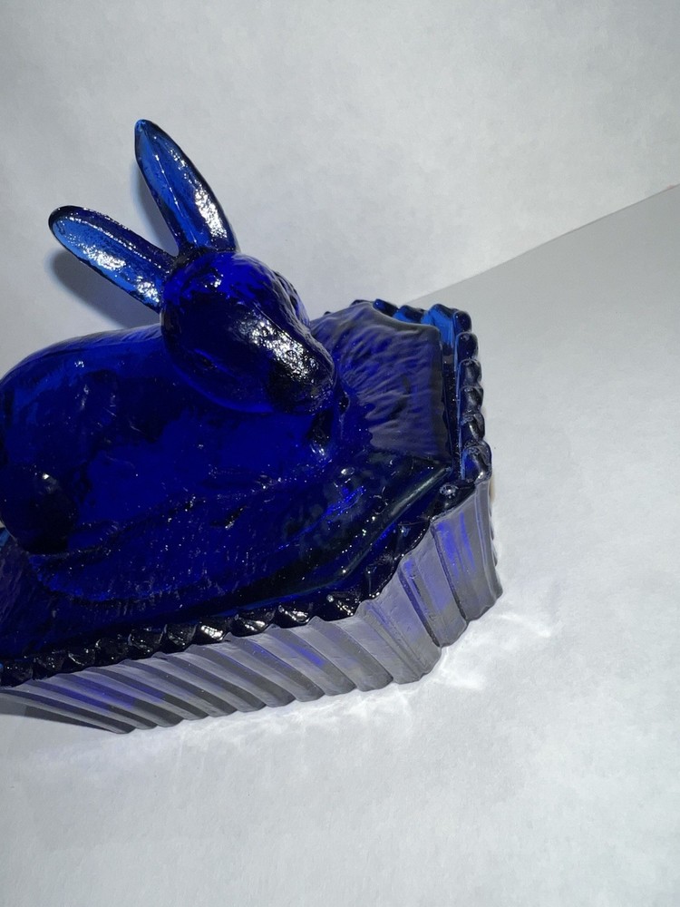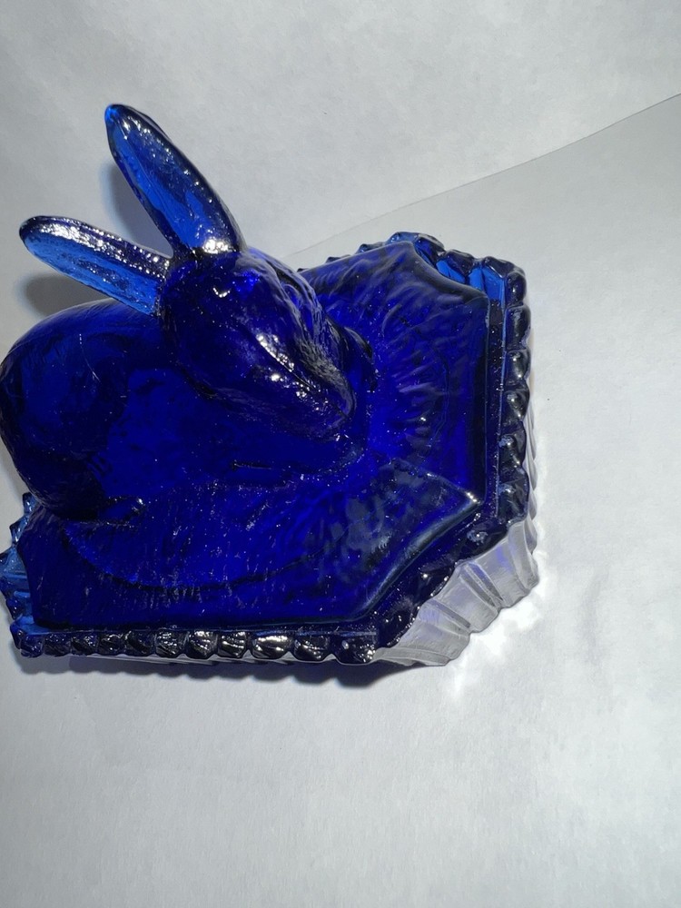 Vintage Westmoreland Cobalt Blue Bunny Rabbit Covered Trinket/Candy Dish Hand blown, so top doesn’t sit well on dish, small imperfection. Top doesn’t fit properly, due to it being hand blown. Please see all pictures for full details!!