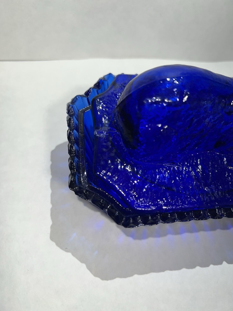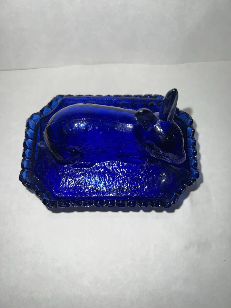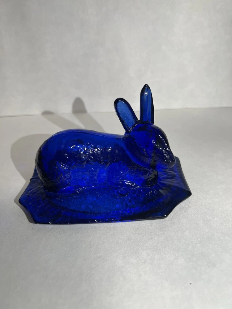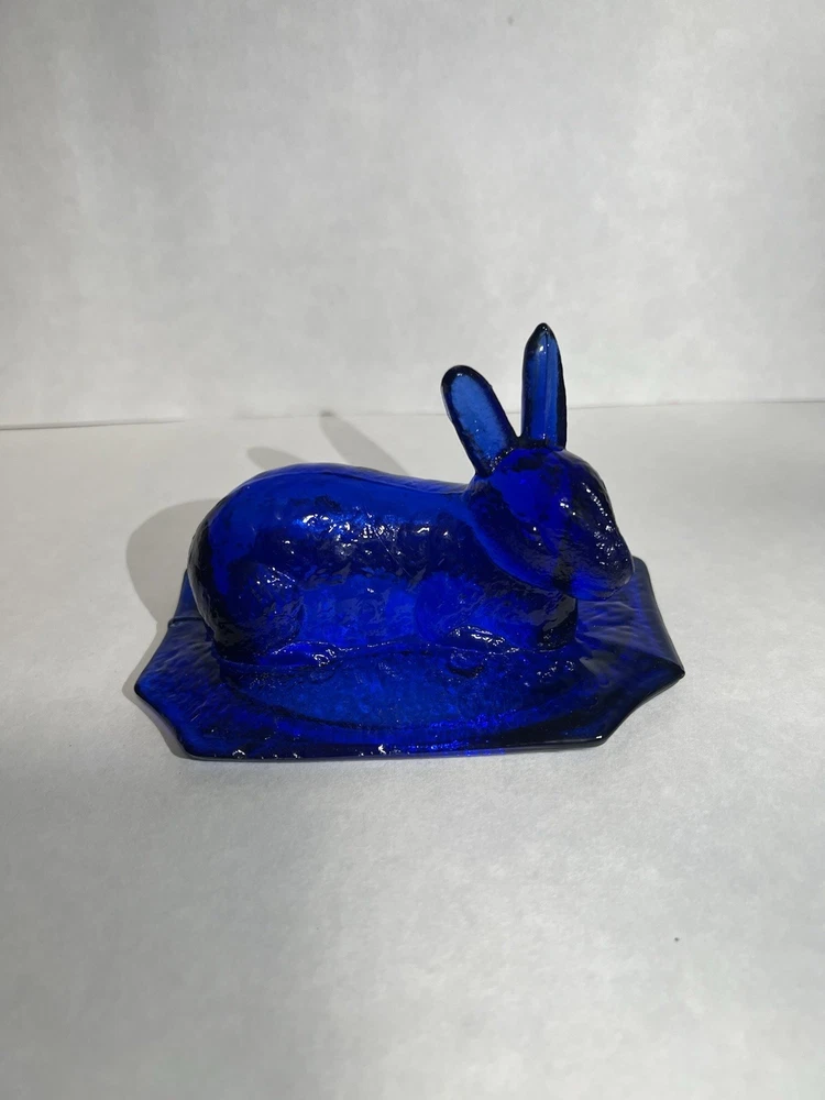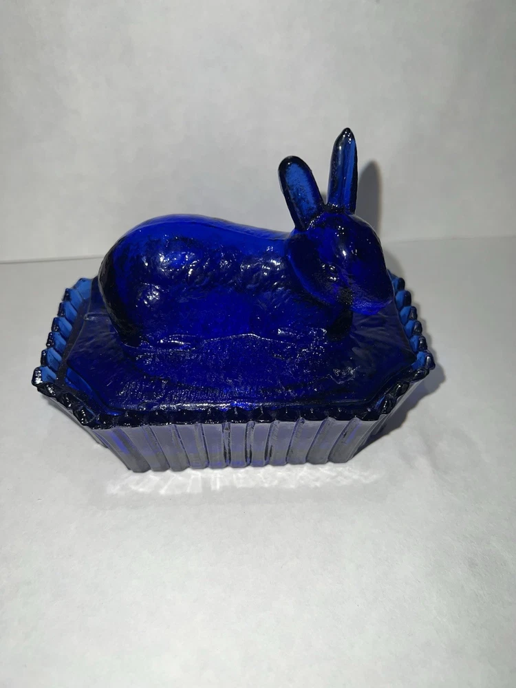 Vintage Westmoreland Cobalt Blue Bunny Rabbit Covered Trinket/Candy Dish Hand blown, so top doesn’t sit well on dish, small imperfection. Top doesn’t fit properly, due to it being hand blown. Please see all pictures for full details!!