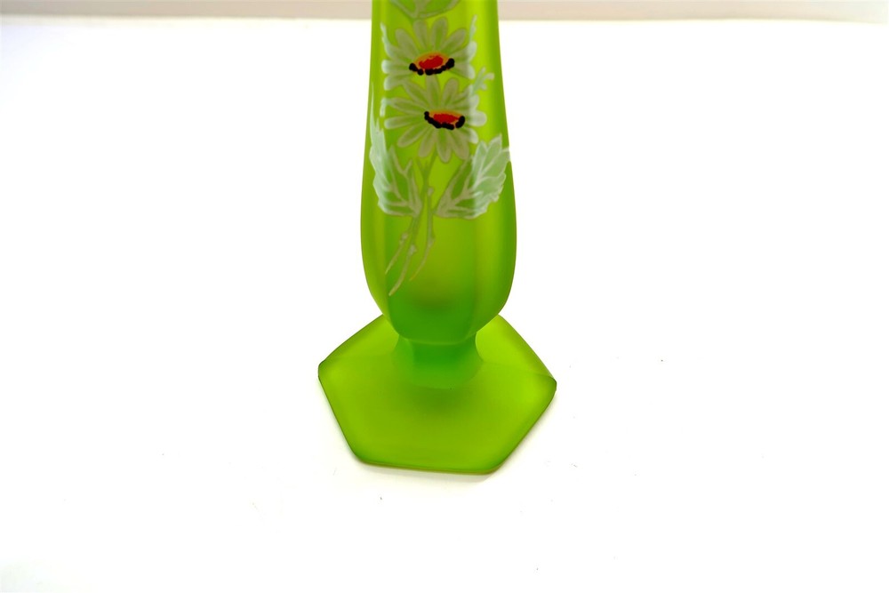 Vintage Westmoreland Daisy Green Satin Glass VASE 9.75" Tall Hand Painted This eBay listing is for a vintage 1970's era Westmoreland Satin Glass vase with hand painted daisy pattern that comes as you see pictured in the listing and noted above. This piece is in excellent condition with no damage or chips found. The painted vase measures a total of 9.75" tall. I just picked up a small 25 piece collection of this Westmoreland satin glass and will have the other pieces listed in my ebay store at this time as well. Seller Location Reference - China Rows BID IN CONFIDENCE – CHECK MY FEEDBACK! My goal is your satisfaction. I leave positive feedback right after the payment is received for all orders!! If you plan to leave anything less than positive feedback and 5 stars - please let me know so that I can work out any problems that you may have. I aim to please!! SHIPPING & HANDLING FOR US BIDDERS We ship ASAP upon payment as noted above within 1 business day 99% of the time!! We normally pack up your new treasures 2 - 3 times a day and ship using USPS and Fedex Ground so that you get your items in a timely fashion. As always - there is no charge for local pickup on any of my items!! SHIPPING AND HANDLING FOR INTERNATIONAL BIDDERS Import duties, taxes and charges are not included in the item price or shipping charges. These charges are the buyer’s responsibility. Please check with your country’s customs office to determine what these additional costs will be prior to bidding/buying.” THANK YOU AND HAVE A WONDERFUL DAY!! Powered by SixBit's eCommerce Solution