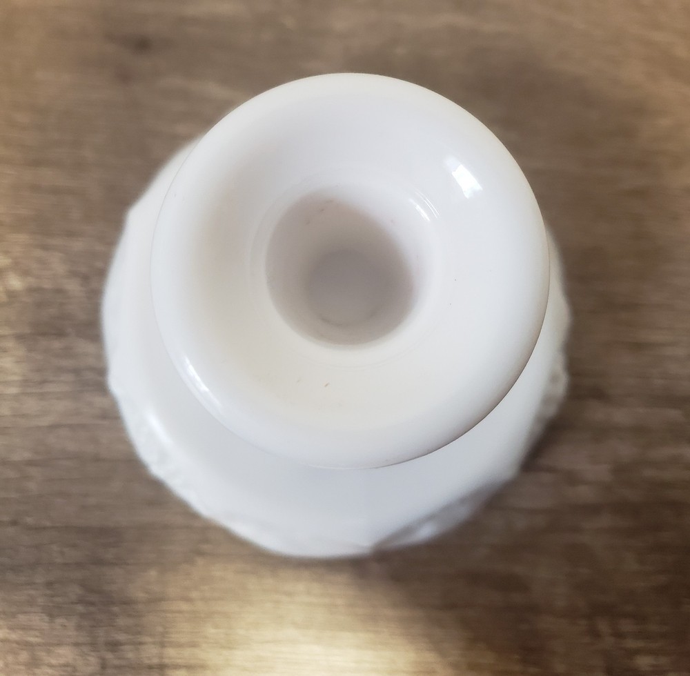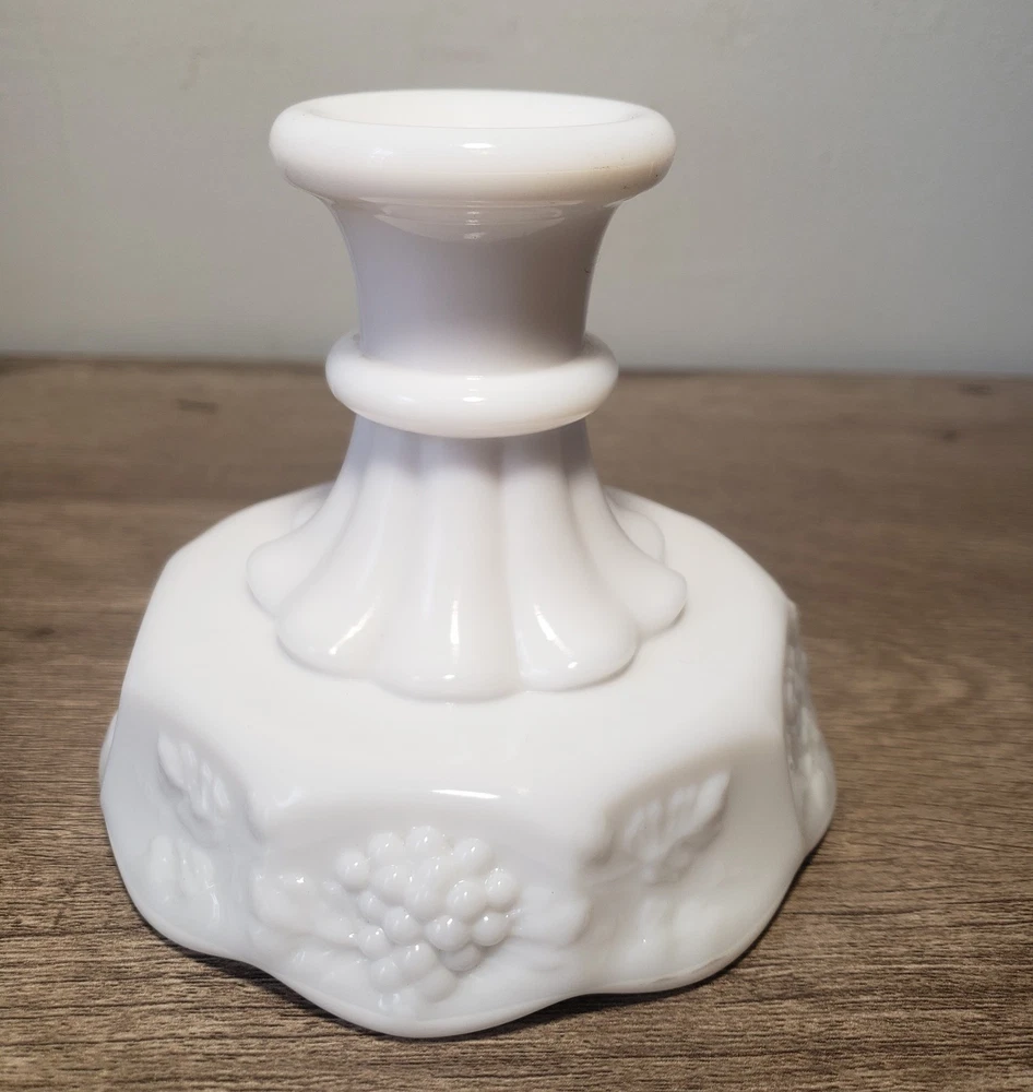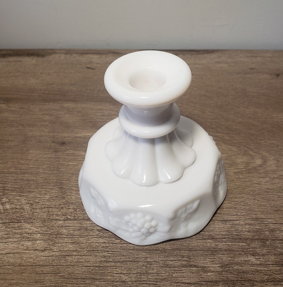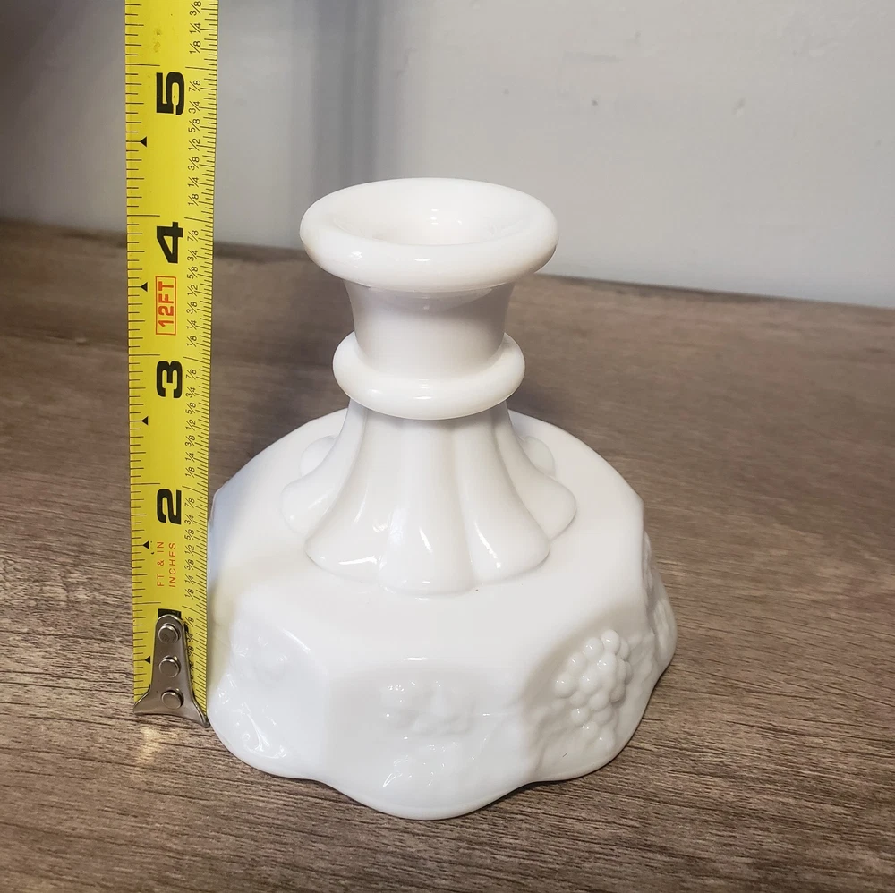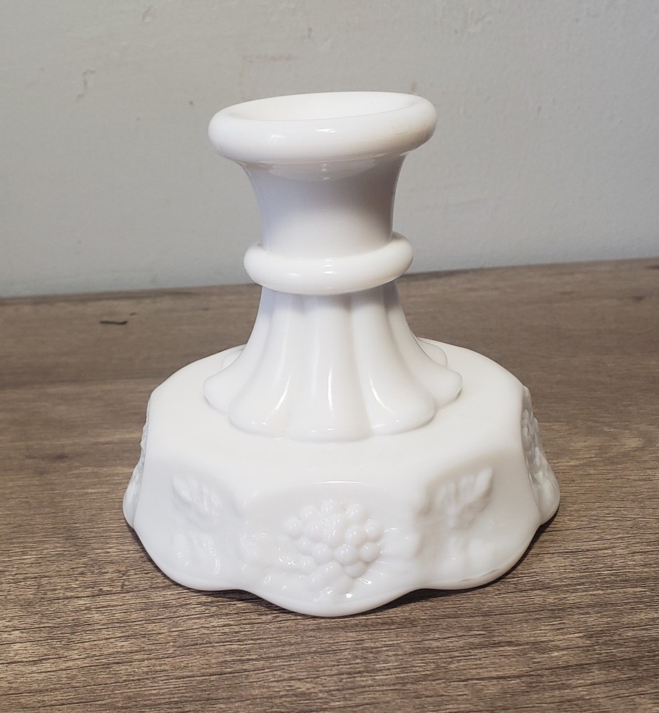 WESTMORELAND MILK GLASS 4" CANDLESTICK CANDLE HOLDER PANELED GRAPE. Condition is Used. Shipped with USPS Ground Advantage.