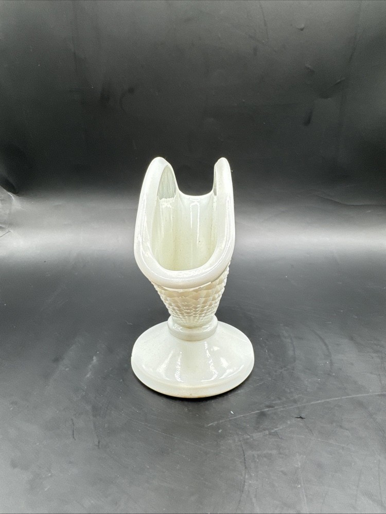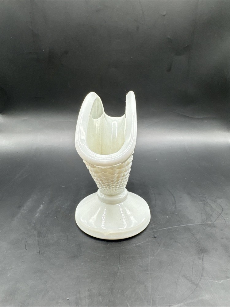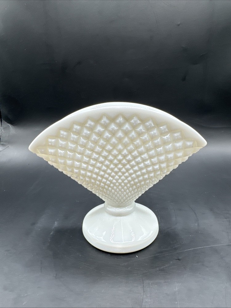 Vintage Westmoreland Milk Glass Fan Vase Diamond Texture Pattern Pre-owned. No visible cracks or chips. See measurements and pictures.