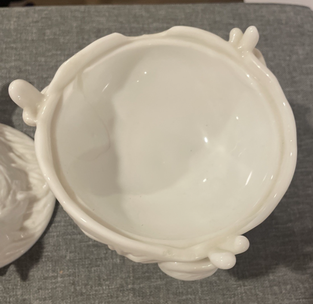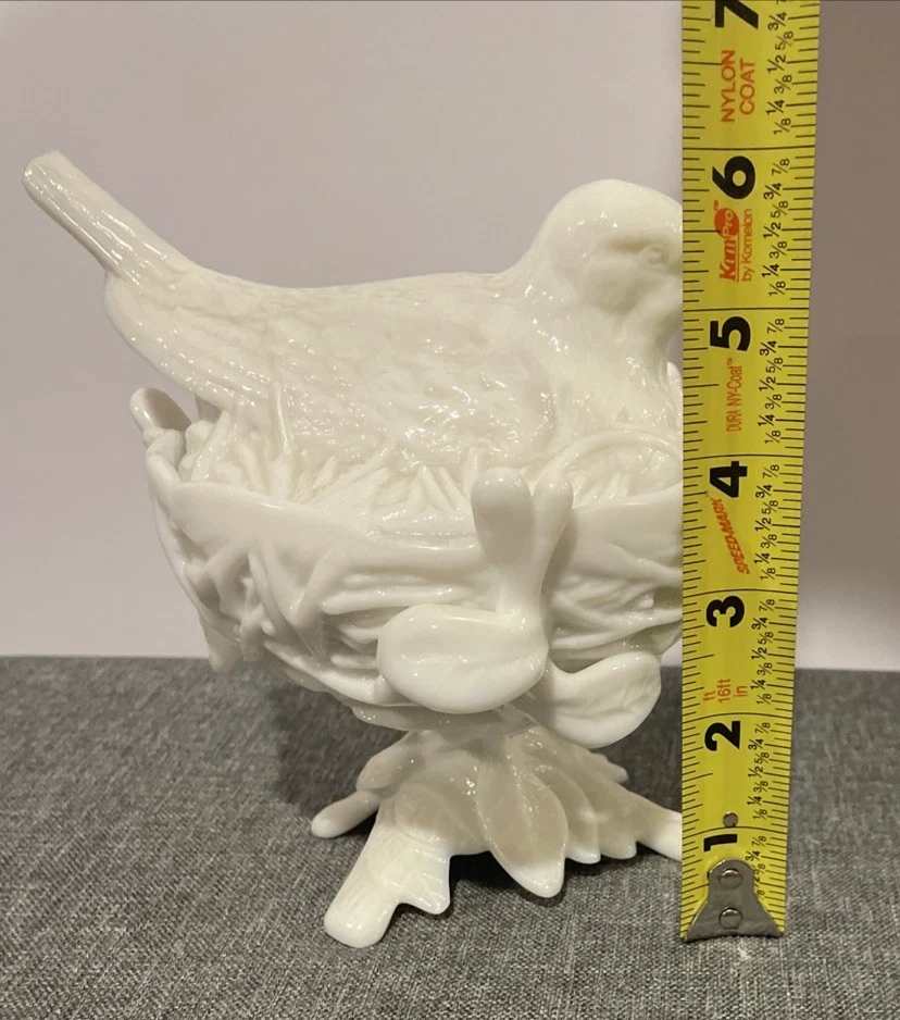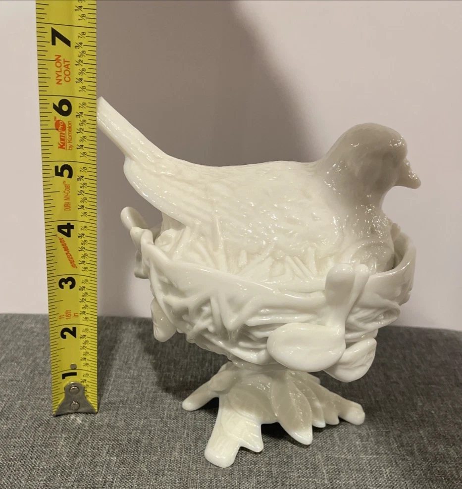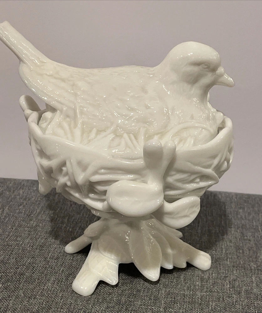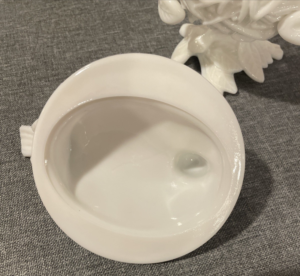 Country/Region of Manufacture: United States Type: Candy Dish Theme: Birds Production Style: Milk Glass Material: Glass Shape: Round Color: White Brand: Westmoreland