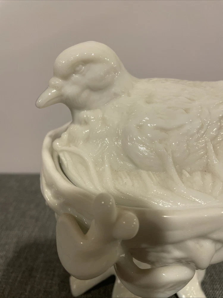 Vintage Westmoreland Milk Glass Footed Candy Dish with Hen Bird on Nest Design