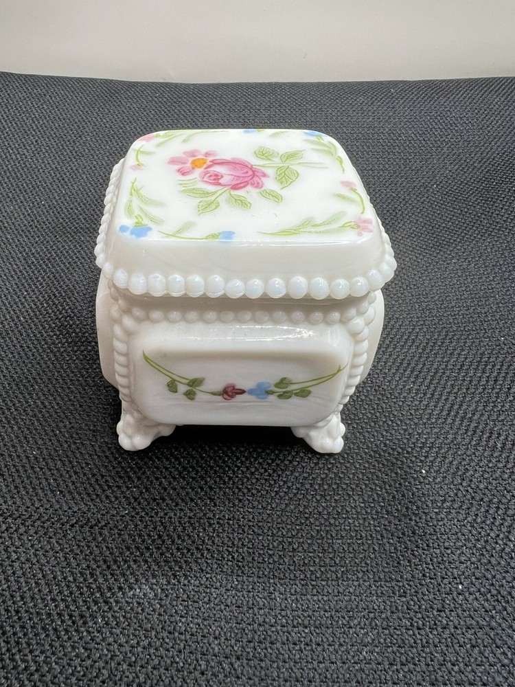 Trinket box is in excellent condition with no chips or cracks. Measurements are in photos. Selling as is, any questions feel free to send a message.