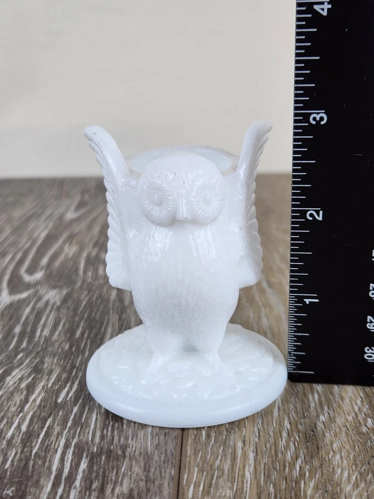 This charming Westmoreland milk glass owl toothpick holder is a classic piece of collectible vintage glassware. Featuring detailed feathers and a wise owl expression, it also works beautifully as a matchstick holder, miniature vase, or white owl figurine for rustic shelves or owl-themed decor. Crafted in classic white glass with intricate molded details, this piece is perfect for collectors of Westmoreland glass, milk glass animals, or lovers of unique decor. A thoughtful gift for lovers of vintage kitchenware, cottagecore accents, or owl collectibles. *It does have a few marks on it. No chips or cracks.