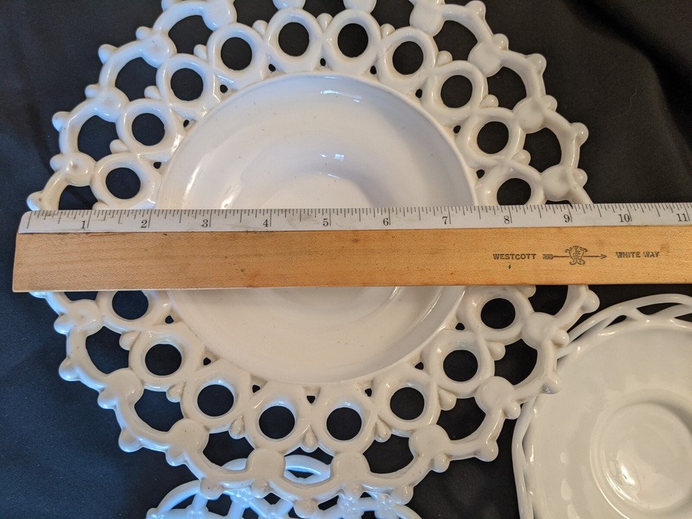 Crafted with precision, this set of three Westmoreland milk glass dishes exudes a timeless charm that complements any decor. Each piece, measuring 7", 9.5", and 6.5" in diameter, showcases the classic elegance of round, white milk glass, reflecting a production style that has been cherished for generations. The dishes are a testament to the craftsmanship of the renowned Westmoreland brand, known for its quality and design. Thank you for looking!