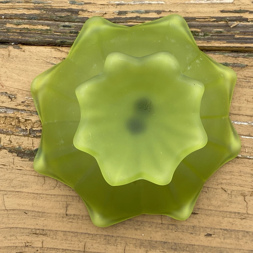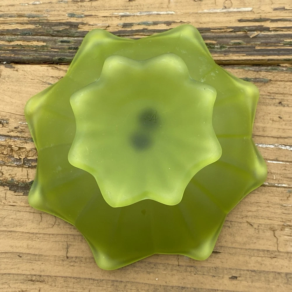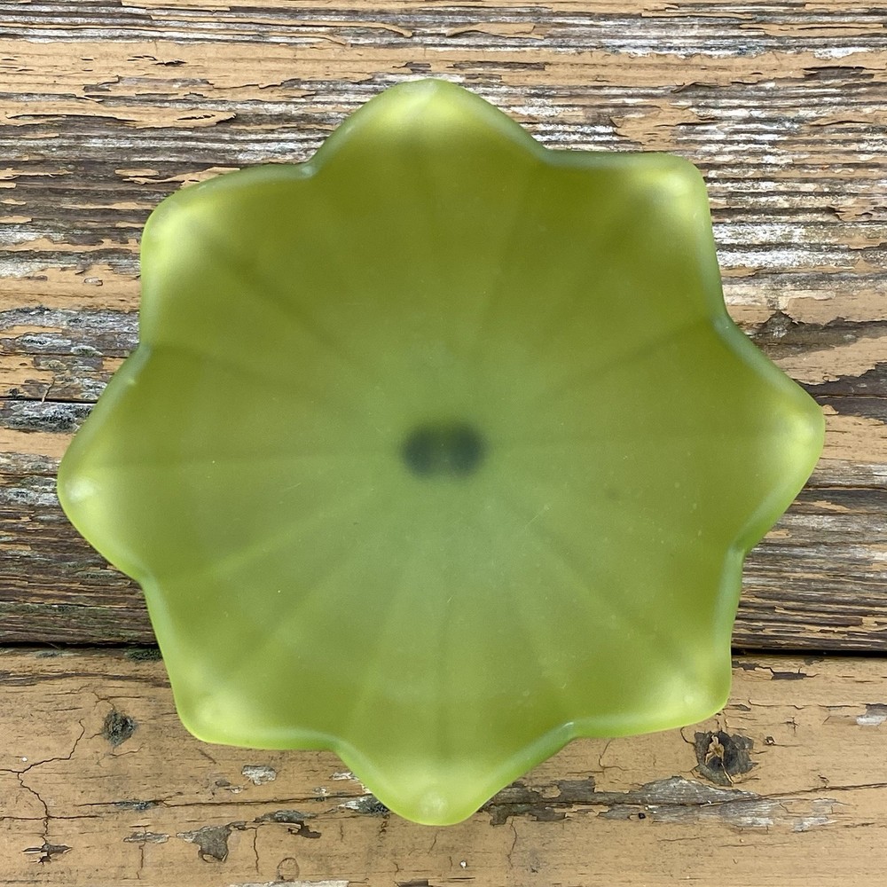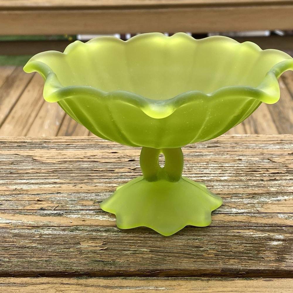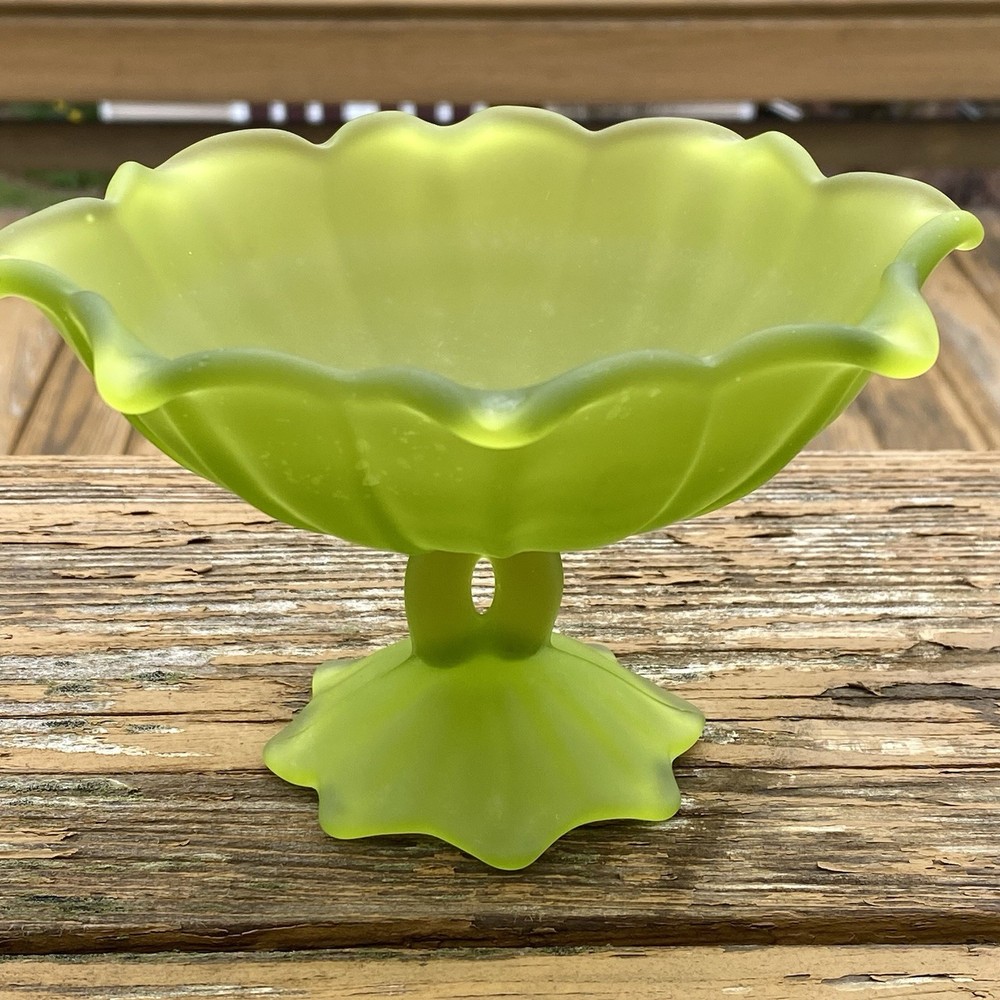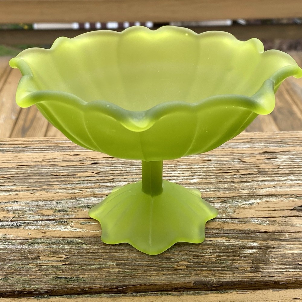 Vintage Original Westmoreland (WG) Stemmed Doric Satin Lotus Dish This piece is rare and stunning. Westmoreland (WG), marked on the bottom. - The piece measures 4" inches tall x 6" inches wide. - There are no cracks or repairs. some surface marks and one small area where satin is worn. - The piece is marked on the bottom. The Westmoreland Glass Company was founded in 1889 when a group of men purchased the Specialty Glass Company located in East Liverpool, Ohio, and moved it to Grapeville, Penn. Grapeville was chosen as the location of the factory because the property had a large source of natural gas. George West served as president of the company, while his brother Charles West was the Vice President. Ira Brainard was the primary financial backer of Westmoreland. His son J.J. Brainard was an officer in the company. Westmoreland's main production was pressed glass tableware lines, mustard jars, and candy containers. Westmoreland had its own mustard factory and tin shop on the property grounds of the factory. Charles West is regarded as the "Father of the Candy Container Industry" for the company's extensive production of candy containers. West Brothers was a separate company which produced the candy containers and other tinware while operating from the same factory. In 1921, George West left the company and started his own glass company, George West and Sons. Charles West became president while J.J. Brainard became vice president of Westmoreland. The company changed its name to the Westmoreland Glass Company. Prior to his departure, George West created a large decorating department at Westmoreland. Under the direction of Charles West, the company began to make high-quality hand-decorated glass from the 1920s through the 1930s, some of which was exhibited at the Carnegie Museum in Pittsburgh, Pennsylvania. In 1937, Charles West retired and sold his interest to the Brainard family, which controlled the company until 1980. In the 1940s, the Brainard's phased out the high-quality hand-decorated glass and began to produce primarily milk glass. The Westmoreland Glass Company is known for its production of high-quality milk glass, but also is known for its high-quality decorated glass. From the 1920s to the 1950s it was estimated that 90 percent of the production was milk glass. Westmoreland produced carnival glass beginning in 1908 and reissued novelties and pattern glass in carnival treatments in the 1970s until the plant closed in 1984. Westmoreland also produced high quality hand-decorated and cut glass.