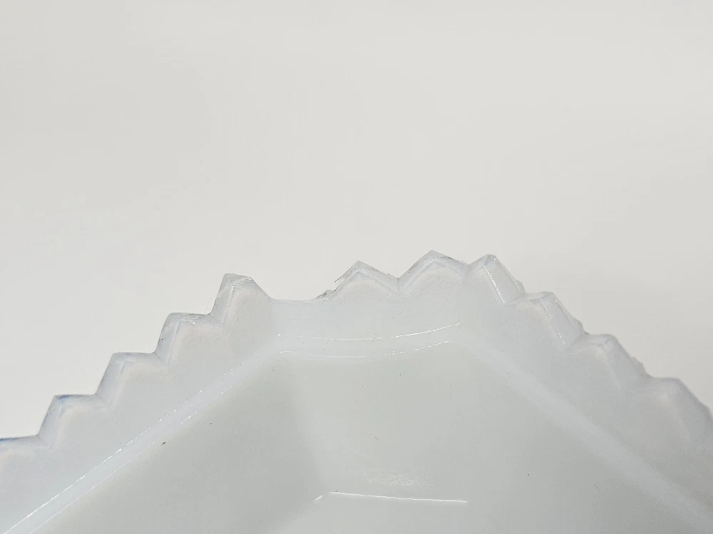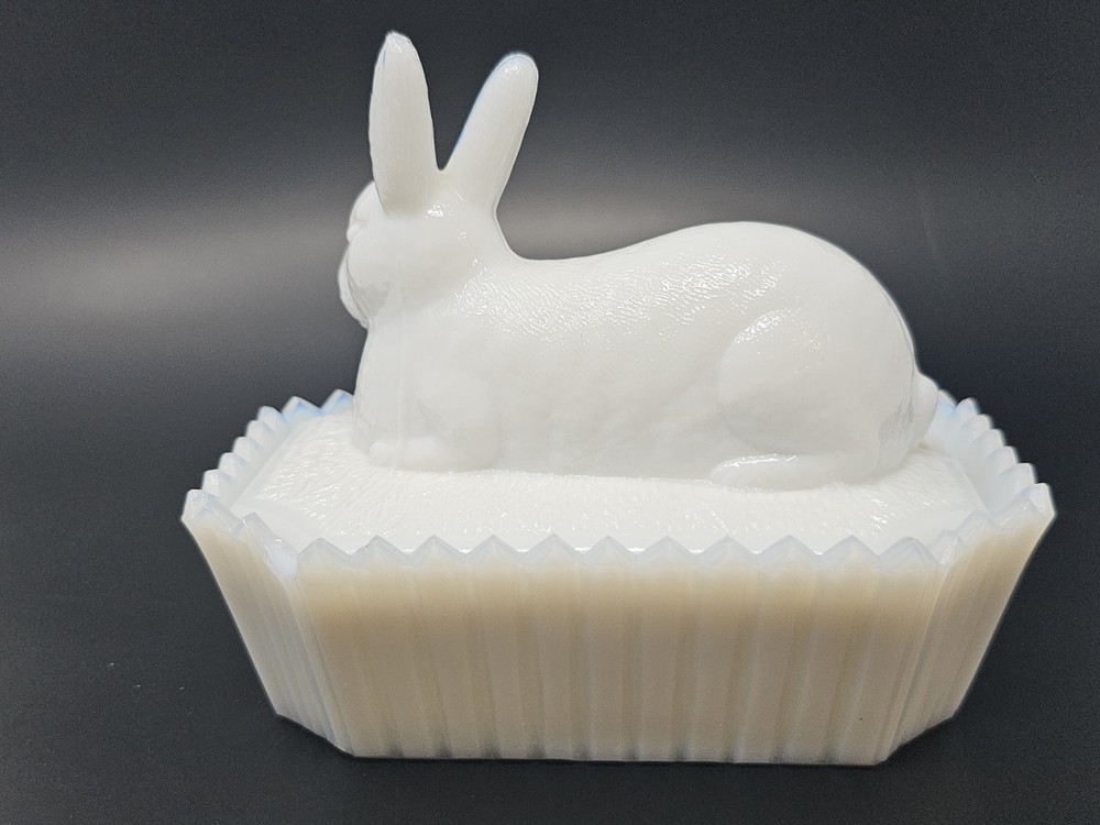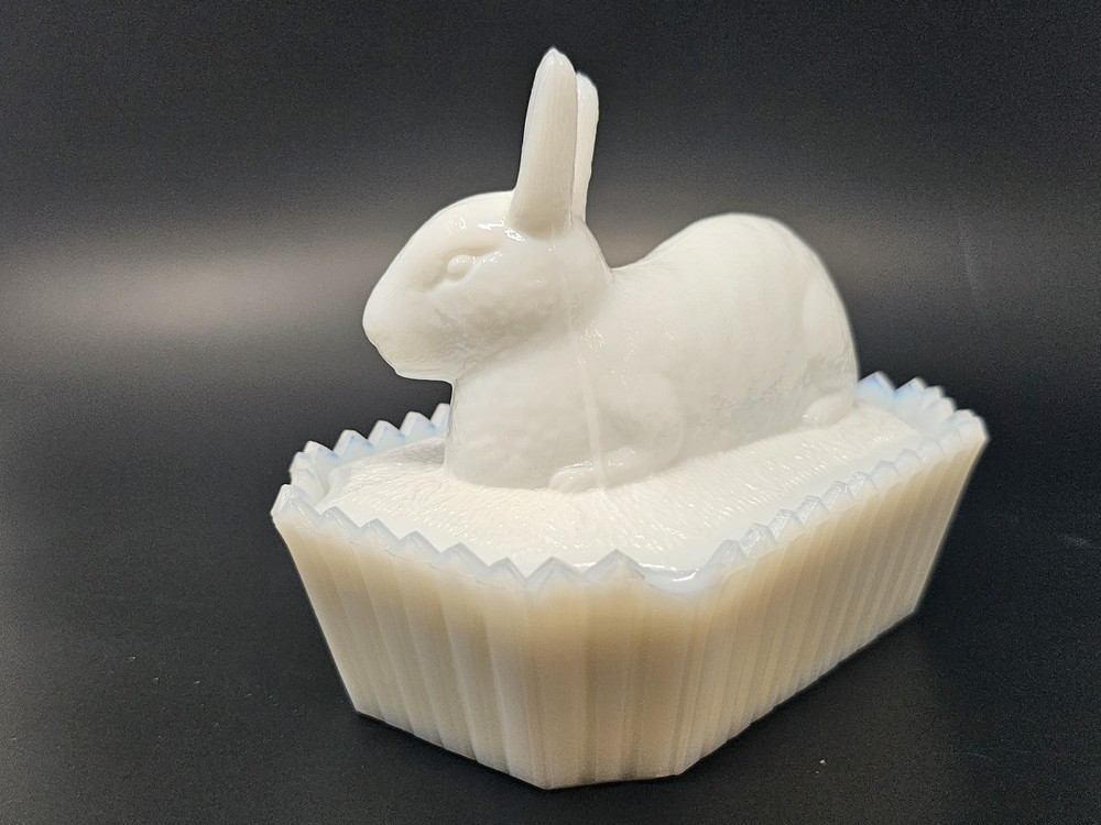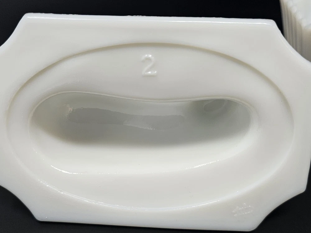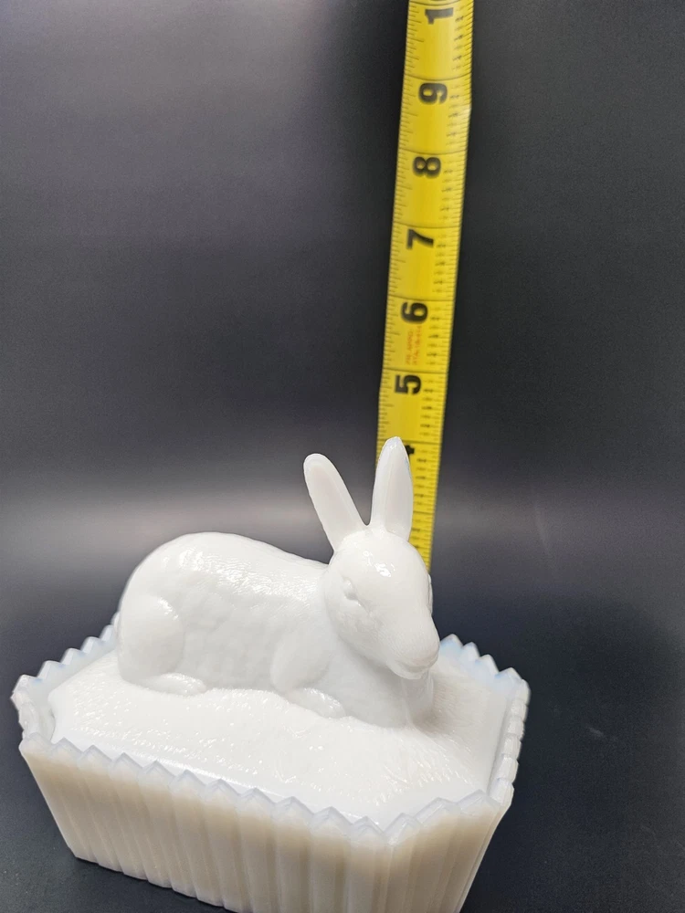 This adorable milk glass soap dish is a delightful vintage find! The rabbit-on-nest design adds whimsical charm to any bathroom or kitchen. The crisp white color and quality craftsmanship show Westmoreland's signature attention to detail. While there's a minor chip (visible in photos), the piece remains in excellent condition overall. Perfect for collectors or anyone wanting to add a touch of retro elegance to their home. The impressed backstamp confirms its authenticity, making it both a functional and decorative treasure.