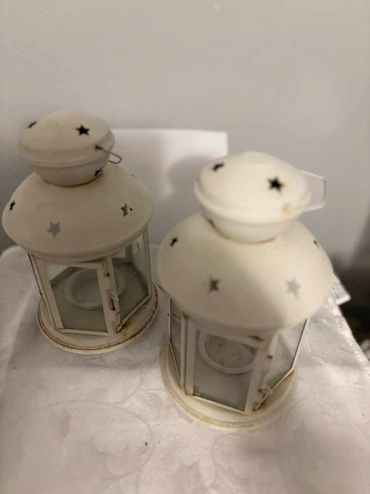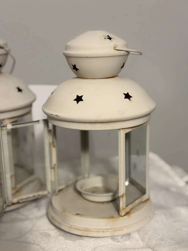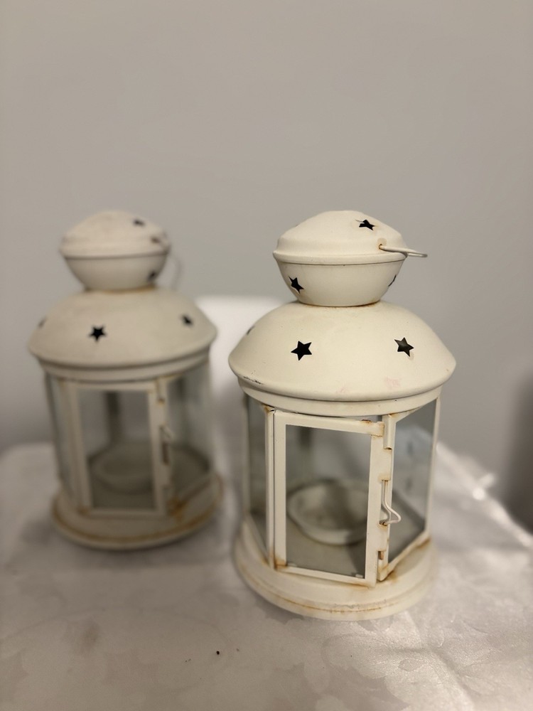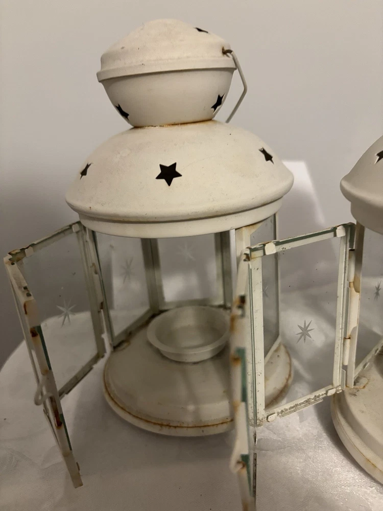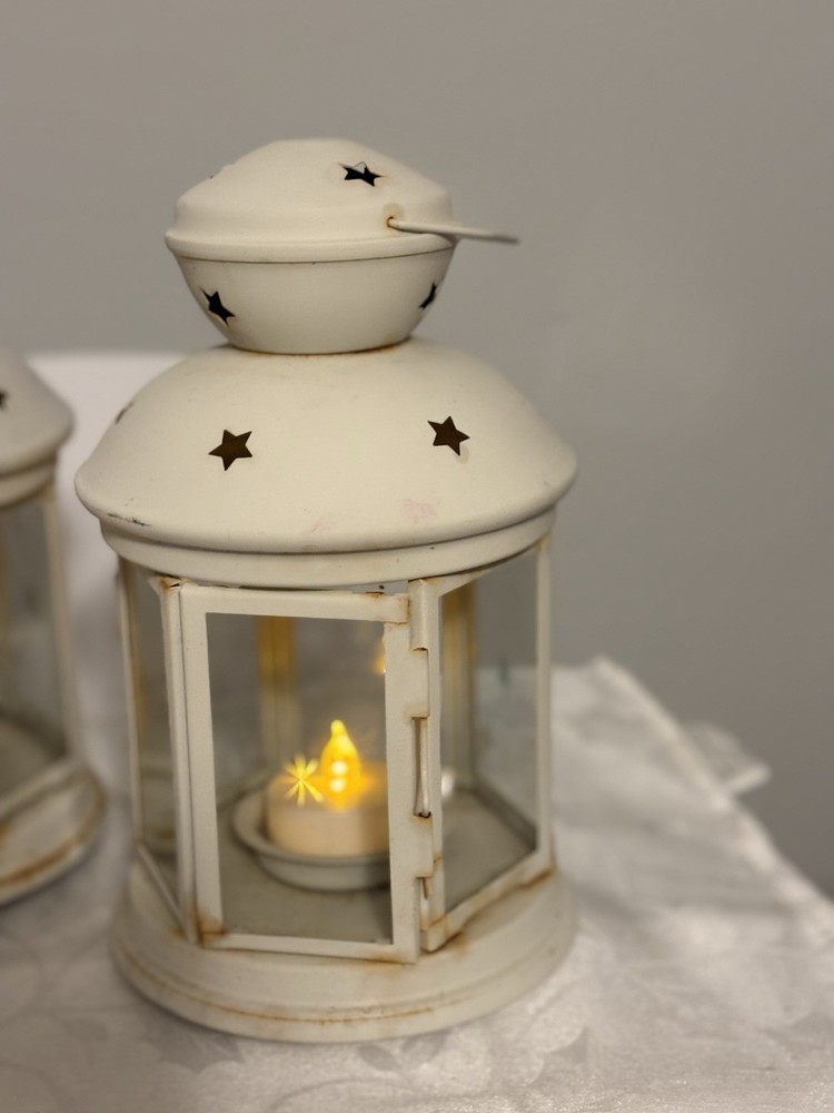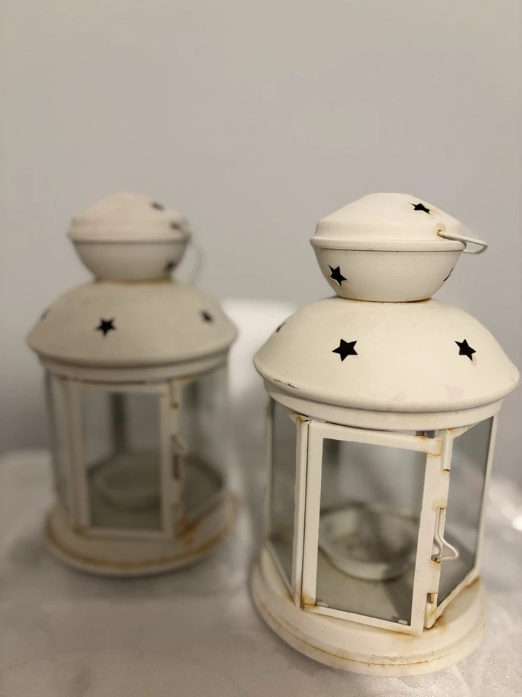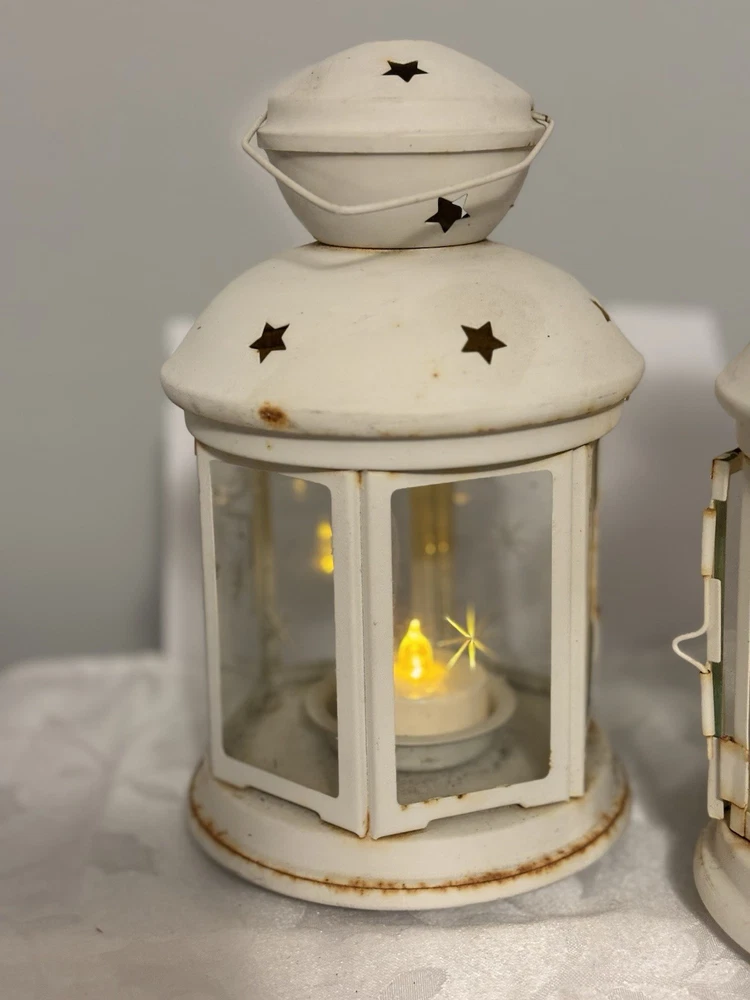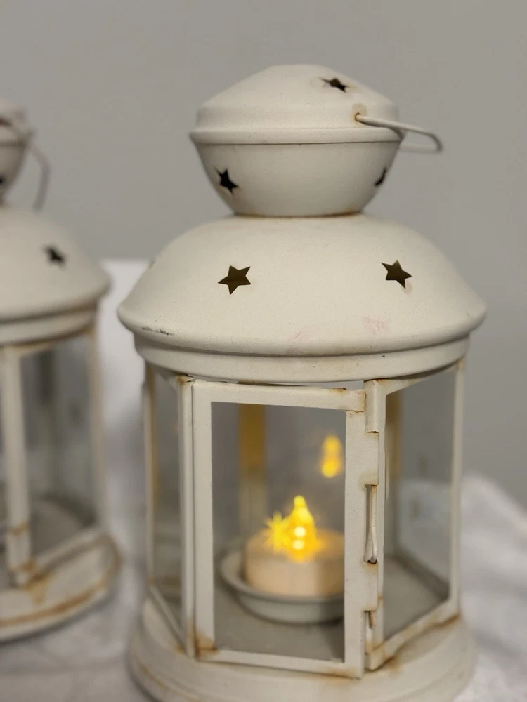 This White Colonial Lantern Candle Light Pair from the brand Colonial Candle is a charming addition to any room. The octagonal shape, distressed finish, and rustic pattern give it a historic and vintage look. Can use real wax or LED candle, these medium-sized candle holders are suitable for windows, walls, and furniture. In or outside entertainment. The white color and country style make them versatile for all occasions, while the easy-care instructions ensure low maintenance. Hinged open for easy care of candle. Perfect for adding a touch of ambiance to any space, these lanterns are sure to enhance the decor of your home. Returns accepted within 30 days; buyer pays return shipping