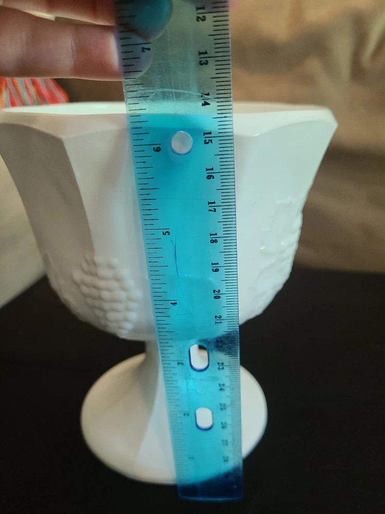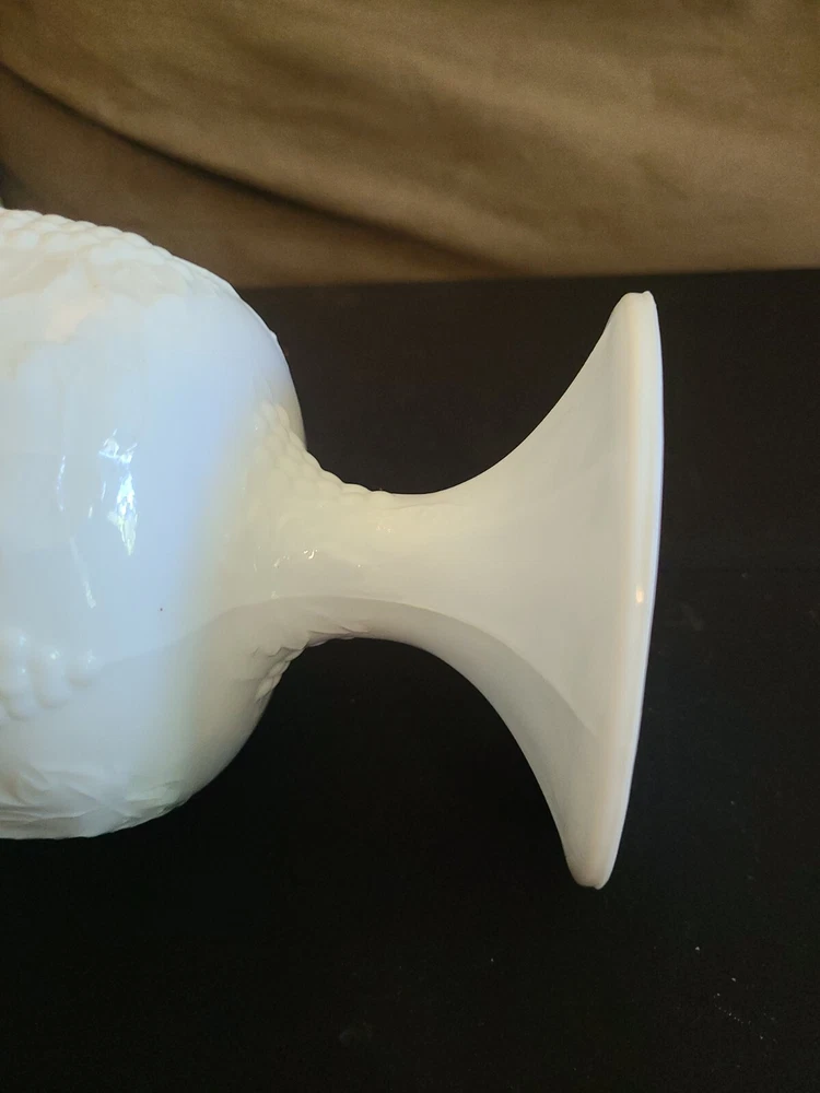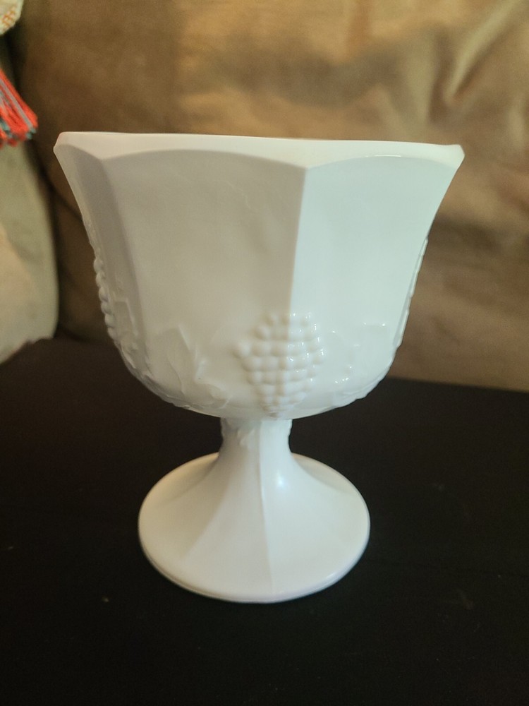 Vintage White Milk Glass Grape And Vine Footed Pedestal Candy Dish Bowl 6.25". This is in great pre-owned condition, no chips or cracks! 5.5" diameter.